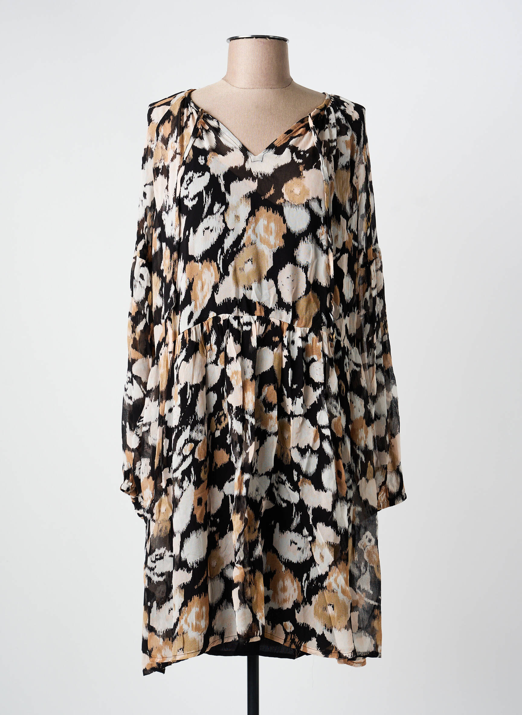 Profitez d’un bon plan mode avec cette robe mi-longue B.YOUNG pour femme, idéale pour renouveler votre garde-robe sans vous ruiner. Son imprimé élégant mêle subtilement des tons noirs, beiges et blancs relevés d’une touche de caramel, apportant une note chic et moderne à votre tenue. La coupe fluide et les manches longues légèrement bouffantes créent un tombé agréable, parfait pour un look décontracté ou sophistiqué selon vos envies. Offrez-vous le style à petit prix et laissez-vous séduire par cette pièce tendance à saisir en déstockage !