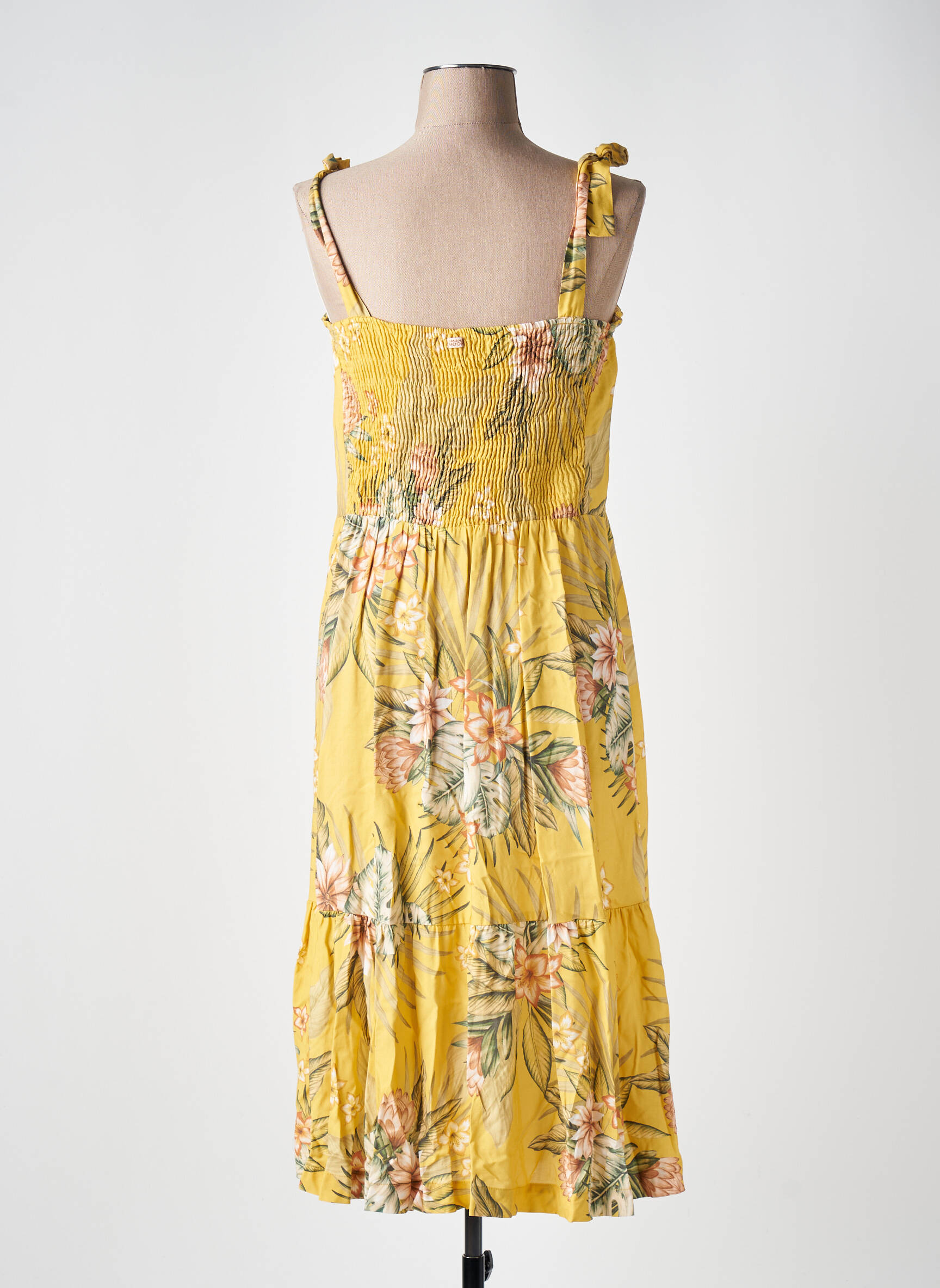 Profitez d’une occasion à ne pas manquer avec cette robe mi-longue Banana Moon pour femme, idéale pour insuffler une note de fraîcheur et de légèreté à votre dressing sans vous ruiner. Sa teinte jaune lumineuse, sublimée par un imprimé floral délicat, en fait une pièce estivale incontournable, parfaite pour mettre en valeur votre silhouette en toute décontraction. Les bretelles nouées et la coupe fluide ajoutent un charme décontracté, tandis que sa taille légèrement marquée assure un tomber flatteur, pour un look raffiné à prix doux.