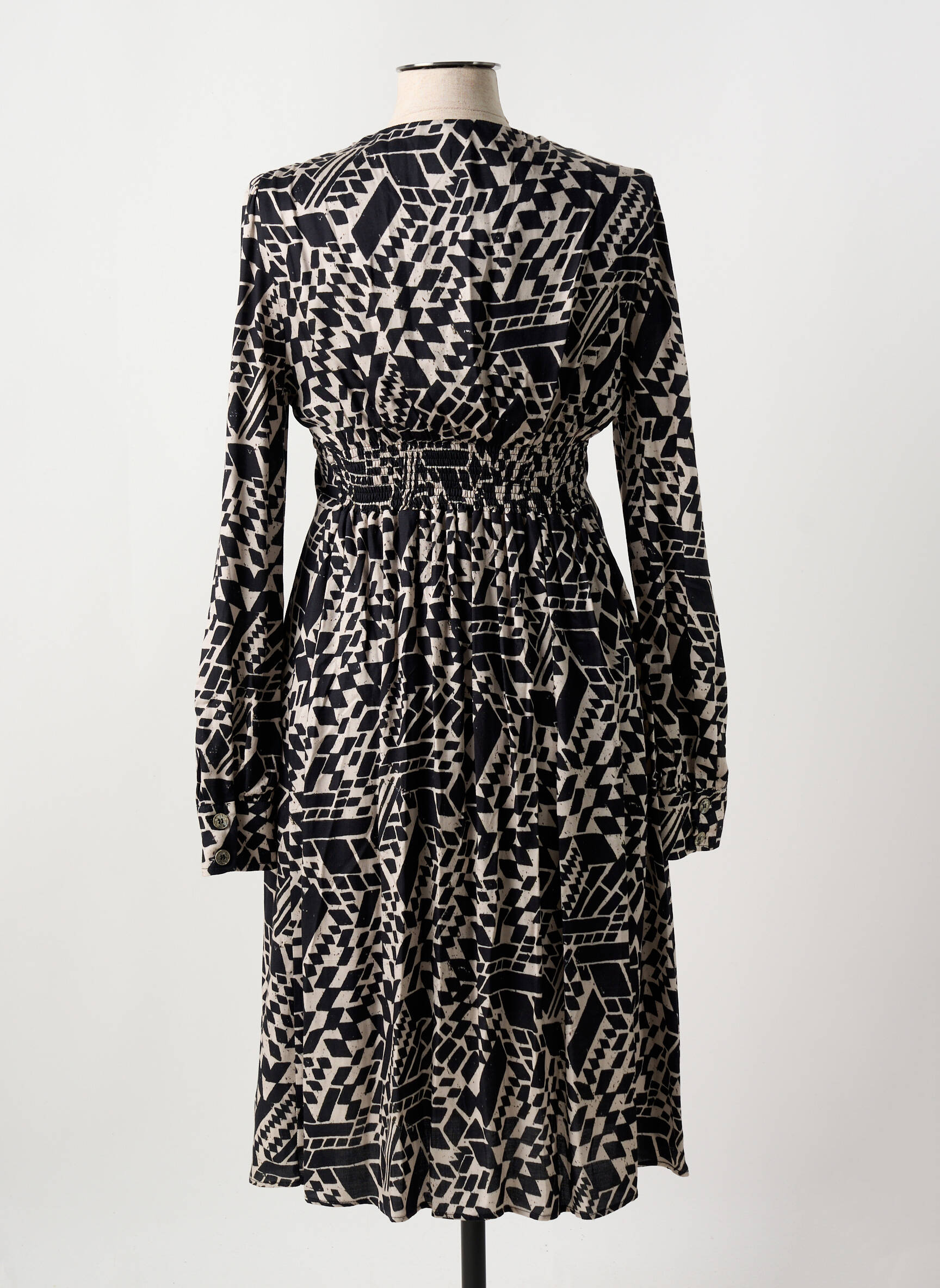 Profitez d’un véritable bon plan avec cette robe mi-longue de la marque BARILOCHE, idéale pour apporter une touche graphique et moderne à votre garde-robe sans vous ruiner. Son imprimé noir et beige au motif géométrique attire le regard tout en restant facile à porter au quotidien, tandis que sa coupe fluide à manches longues met en valeur la silhouette avec élégance et confort. Saisissez cette opportunité d’acquérir une pièce tendance à prix mini pour sublimer votre style en toute occasion.
