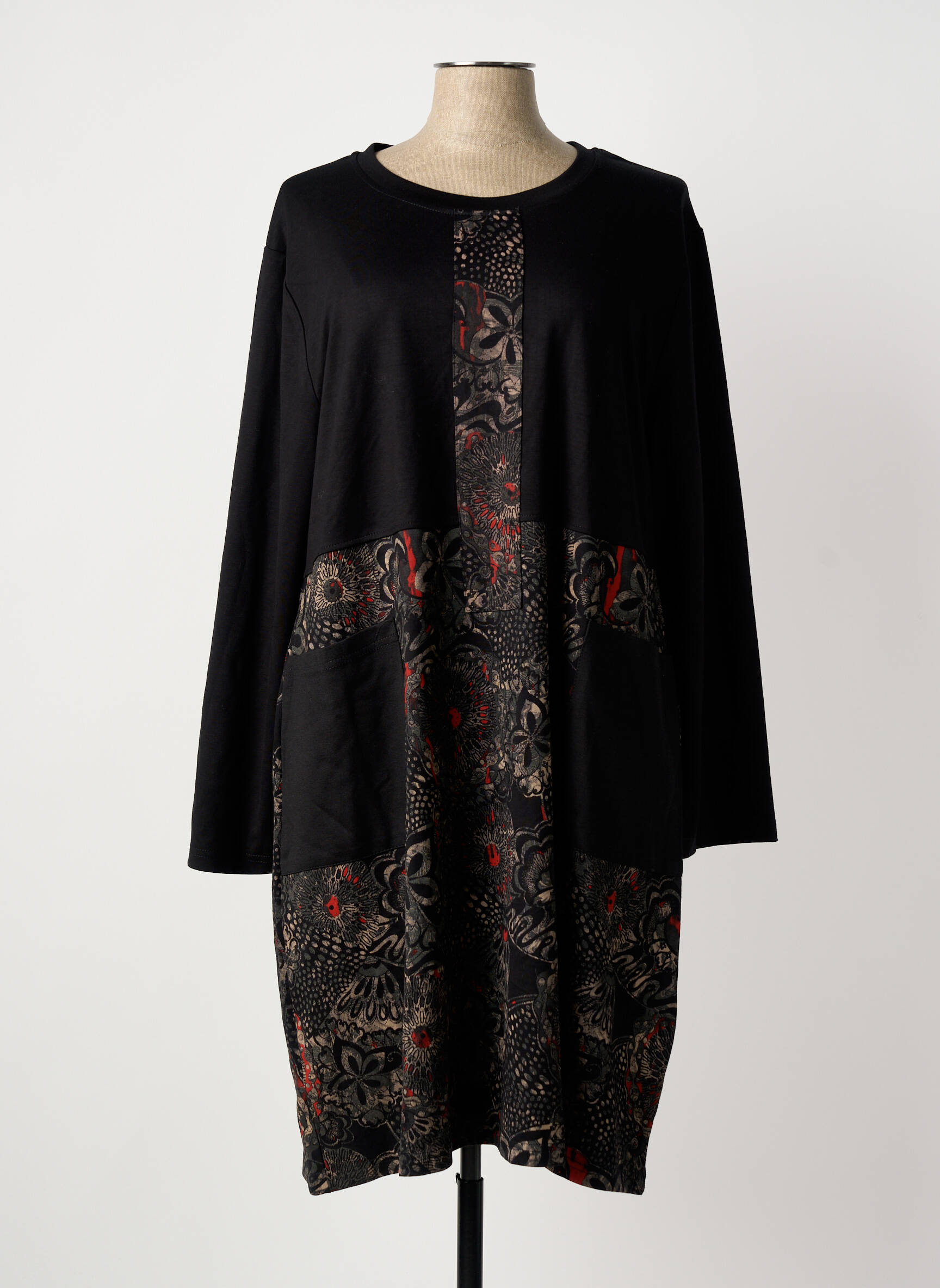 Cette robe se porte facilement avec une paire de bottines ou de baskets pour un look citadin et décontracté, rehaussée d’un long gilet ou d’une veste courte en cuir pour une touche plus affirmée. On peut l’accessoiriser avec une ceinture fine à la taille pour revisiter la silhouette et quelques bijoux dorés ou argentés qui rappellent les détails du motif. Un sac bandoulière ou un cabas complètera parfaitement l’ensemble, pour une tenue confortable aussi bien en journée qu’en soirée.