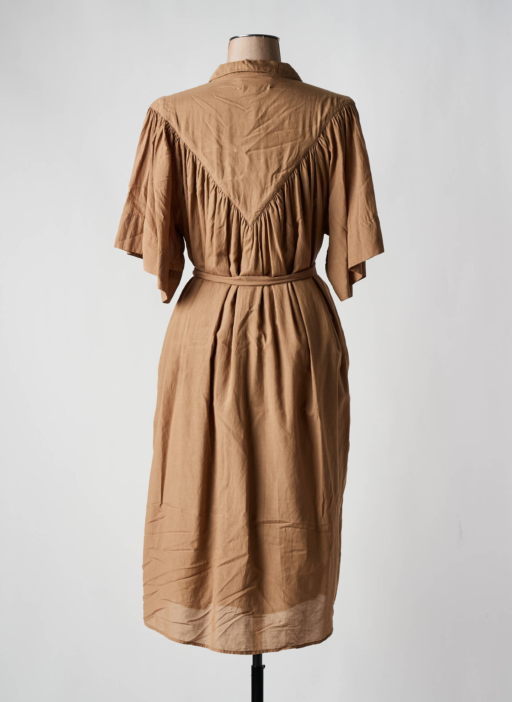 Robe Mi-longue Belle Pièce Marron Manches Courtes