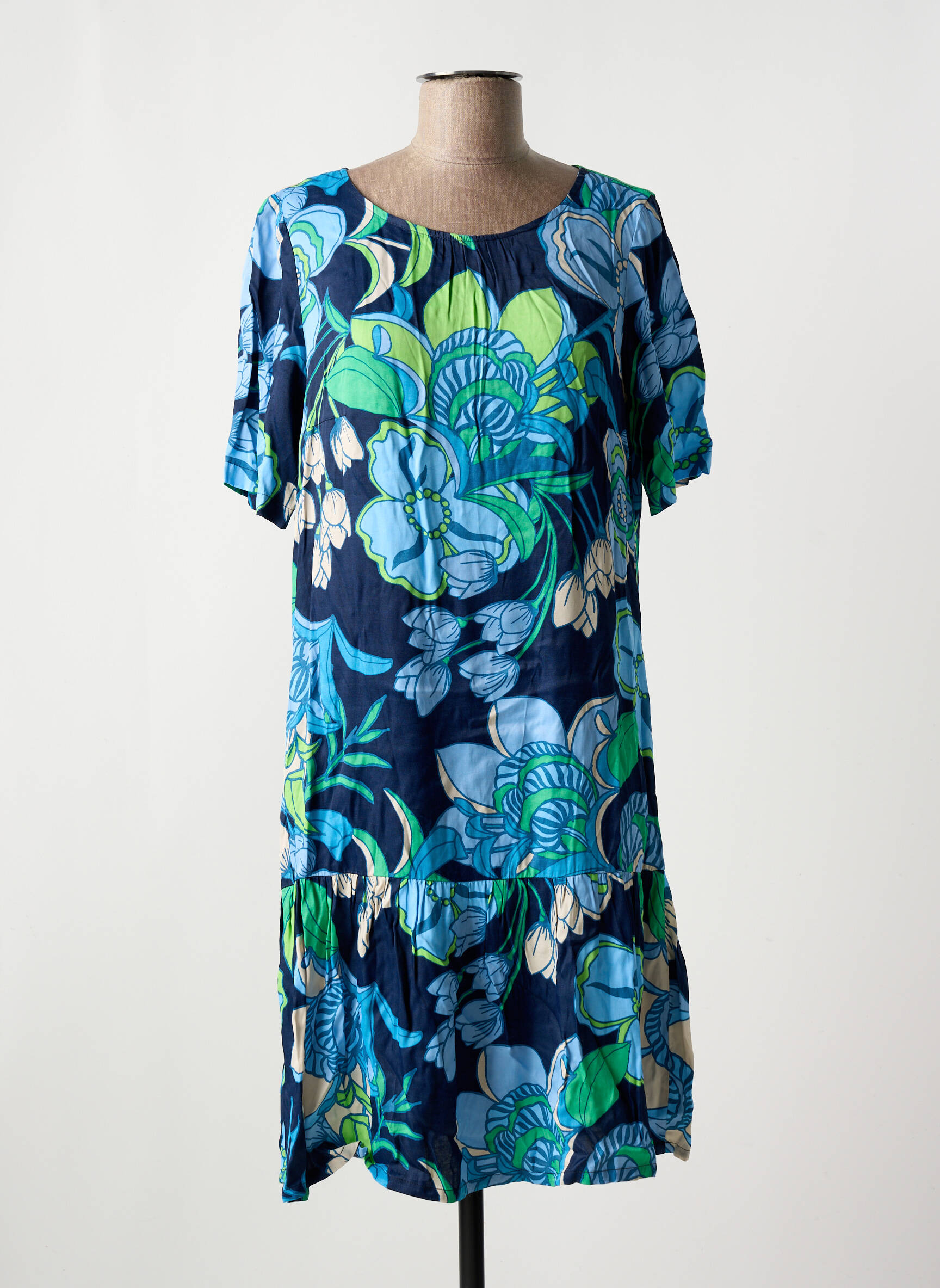 Profitez d’un vrai bon plan mode avec cette robe mi-longue signée BETTY BARCLAY, parfaite pour adopter un style frais et coloré à petit prix. Son imprimé floral dans les tons bleus et verts illumine votre silhouette tout en offrant un esprit décontracté idéal pour la saison. Sa coupe droite et fluide ainsi que ses manches courtes apportent confort et légèreté au quotidien, faisant de cette robe un indispensable à saisir pour renouveler votre dressing sans se ruiner.