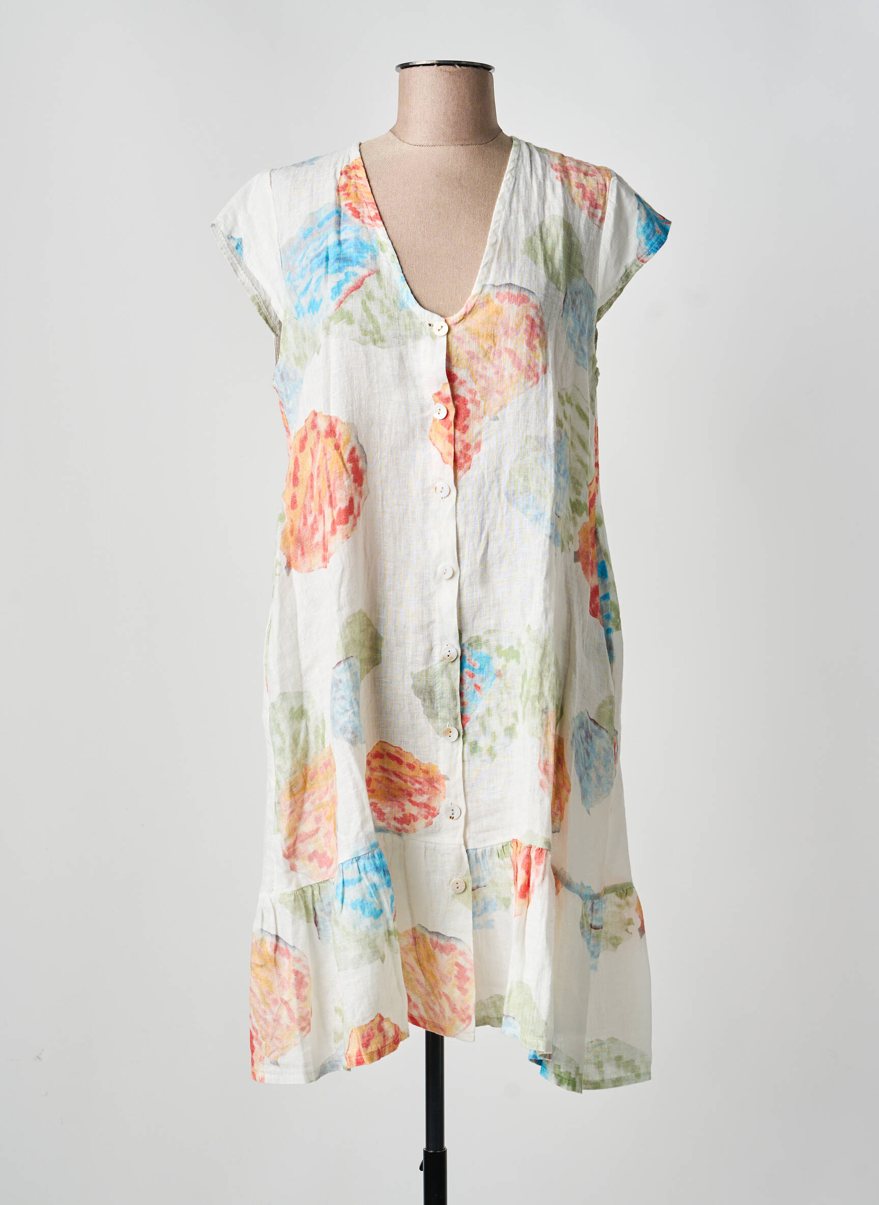 Profitez d’une belle opportunité avec cette robe mi-longue BLANC BOHEME pour femme, parfaite pour apporter une touche de fraîcheur à votre garde-robe sans vous ruiner. Son imprimé coloré aux notes artistiques donne du peps à sa coupe ample et fluide, idéale pour des journées ensoleillées ou une balade en ville. La boutonnière discrète sur le devant ajoute une finition délicate et permet d’adopter un look à la fois décontracté et élégant, tout en misant sur un excellent rapport qualité-prix.