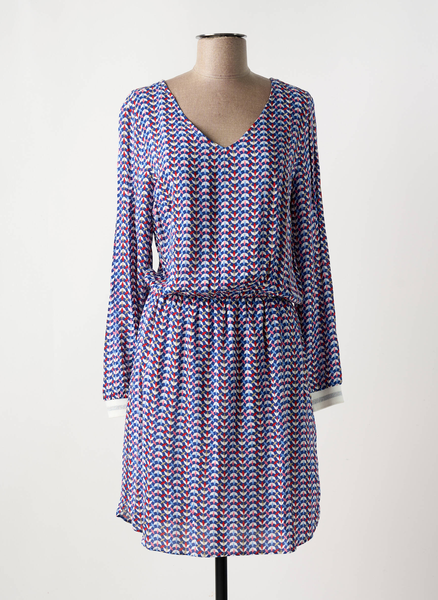 Craquez pour cette robe mi-longue C'EST BEAU LA VIE à prix tout doux, une véritable pépite à saisir pour renouveler votre dressing sans vous ruiner. Son imprimé graphique aux teintes vives apporte une touche de pep’s à votre silhouette tandis que la coupe légèrement blousante à la taille met parfaitement en valeur votre allure. Les manches longues et l’encolure en V ajoutent une note de féminité idéale pour toutes vos envies du quotidien ou de sortie, le tout dans un style facile à porter du matin au soir. Une occasion idéale de profiter d’un look tendance à petit prix !