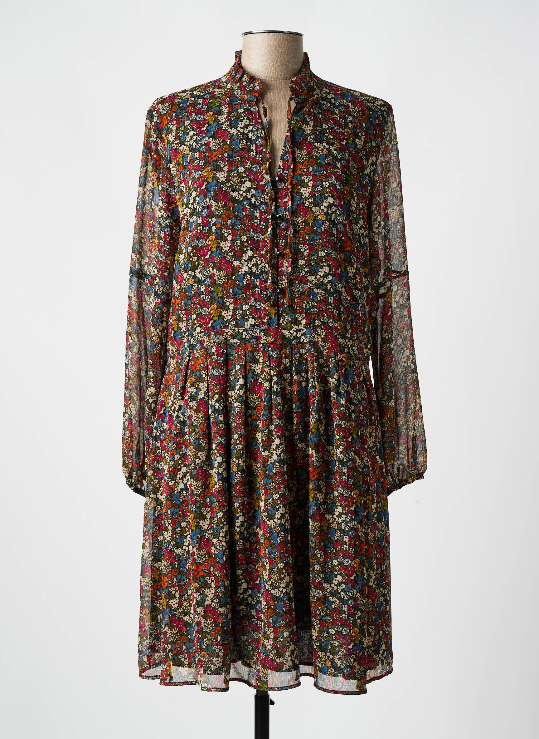 Craquez pour cette robe mi-longue de la marque C'EST BEAU LA VIE, un vrai bon plan pour insuffler une touche de fraîcheur à votre dressing sans vous ruiner. Son imprimé fleuri multicolore apporte gaieté et féminité, tandis que sa coupe fluide et légère souligne la silhouette avec élégance et confort. Les manches longues transparentes et le col légèrement montant ajoutent une note tendance et raffinée, idéale pour toutes vos sorties, tout en profitant d’un prix tout doux.