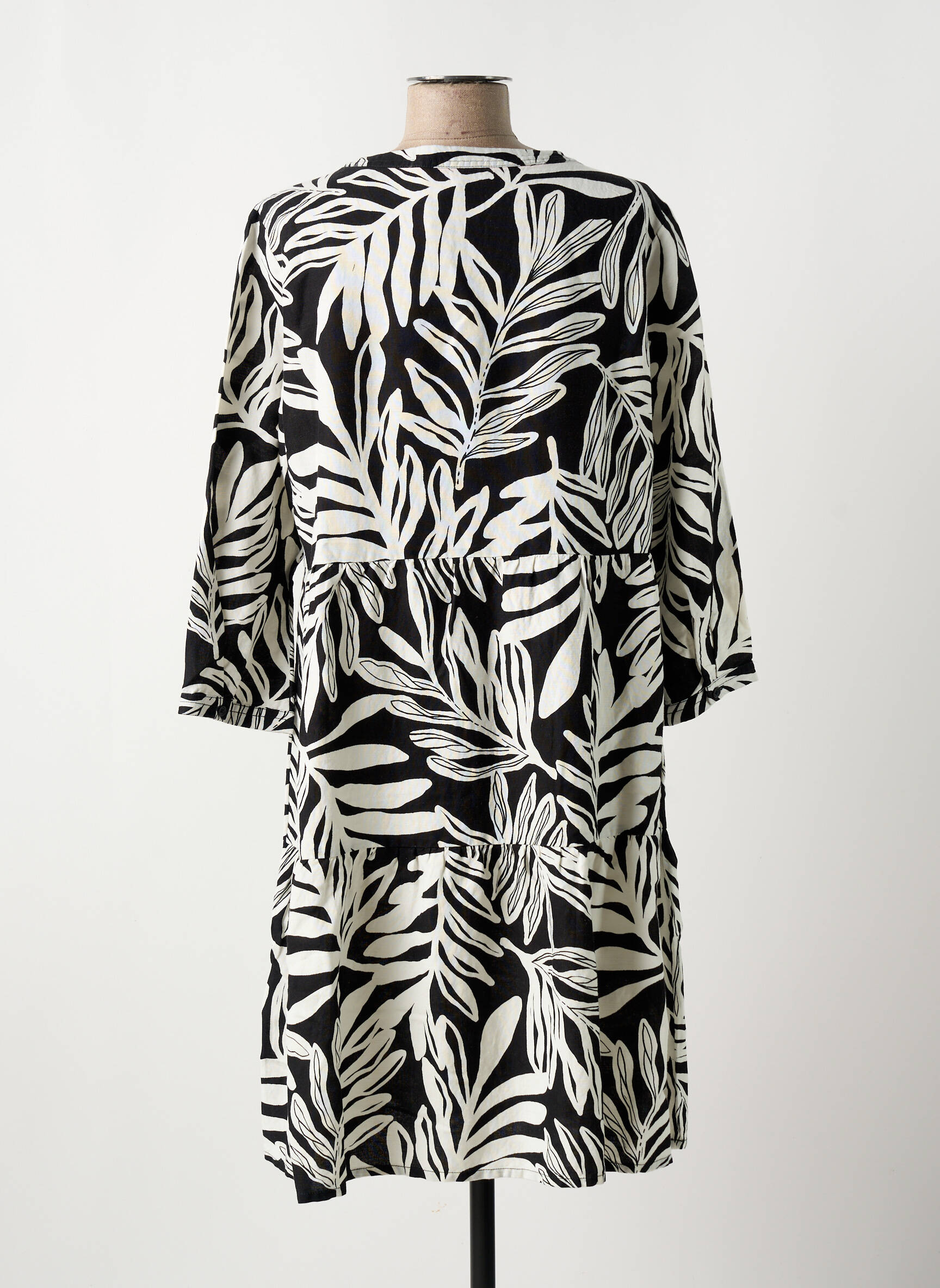 Profitez d’une offre vraiment intéressante avec cette robe mi-longue CECIL pour femme, parfaite pour vous faire plaisir à petit prix. Son imprimé feuillage noir et blanc apporte une touche graphique tendance et facile à porter, tandis que sa coupe fluide assure un grand confort au quotidien. Son col tunisien et ses manches trois-quarts légèrement amples en font un modèle idéal aussi bien pour les sorties détendues que pour valoriser votre style en toute simplicité. Voilà une occasion à ne pas manquer pour renouveler votre garde-robe sans vous ruiner !