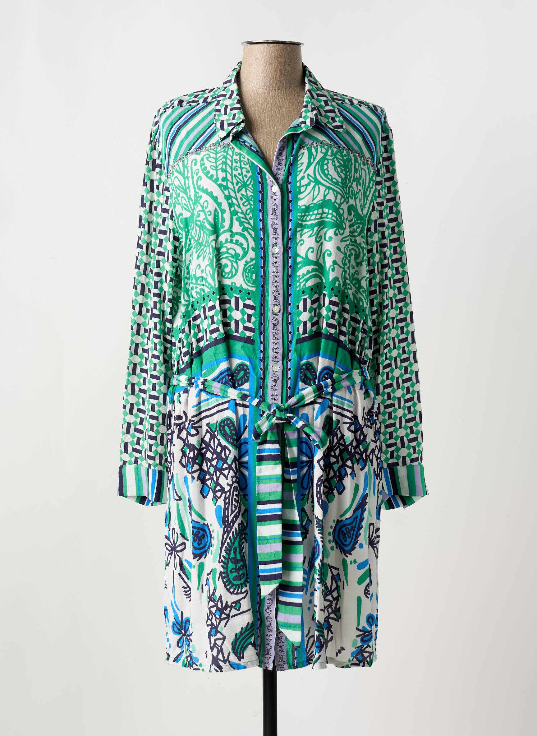 Profitez d’une véritable opportunité avec cette robe mi-longue CHALOU pour femme, idéale pour celles qui recherchent une pièce originale à petit prix. Avec son imprimé graphique et fleuri dans des tons de vert, bleu et blanc, elle apporte une touche de fraîcheur à votre garde-robe tout en restant très accessible. Sa coupe fluide est soulignée par une ceinture à la taille qui mettra votre silhouette en valeur, le tout dans un style casual-chic facile à porter au quotidien comme en week-end. Voici une robe à saisir sans hésiter pour allier style et économies.