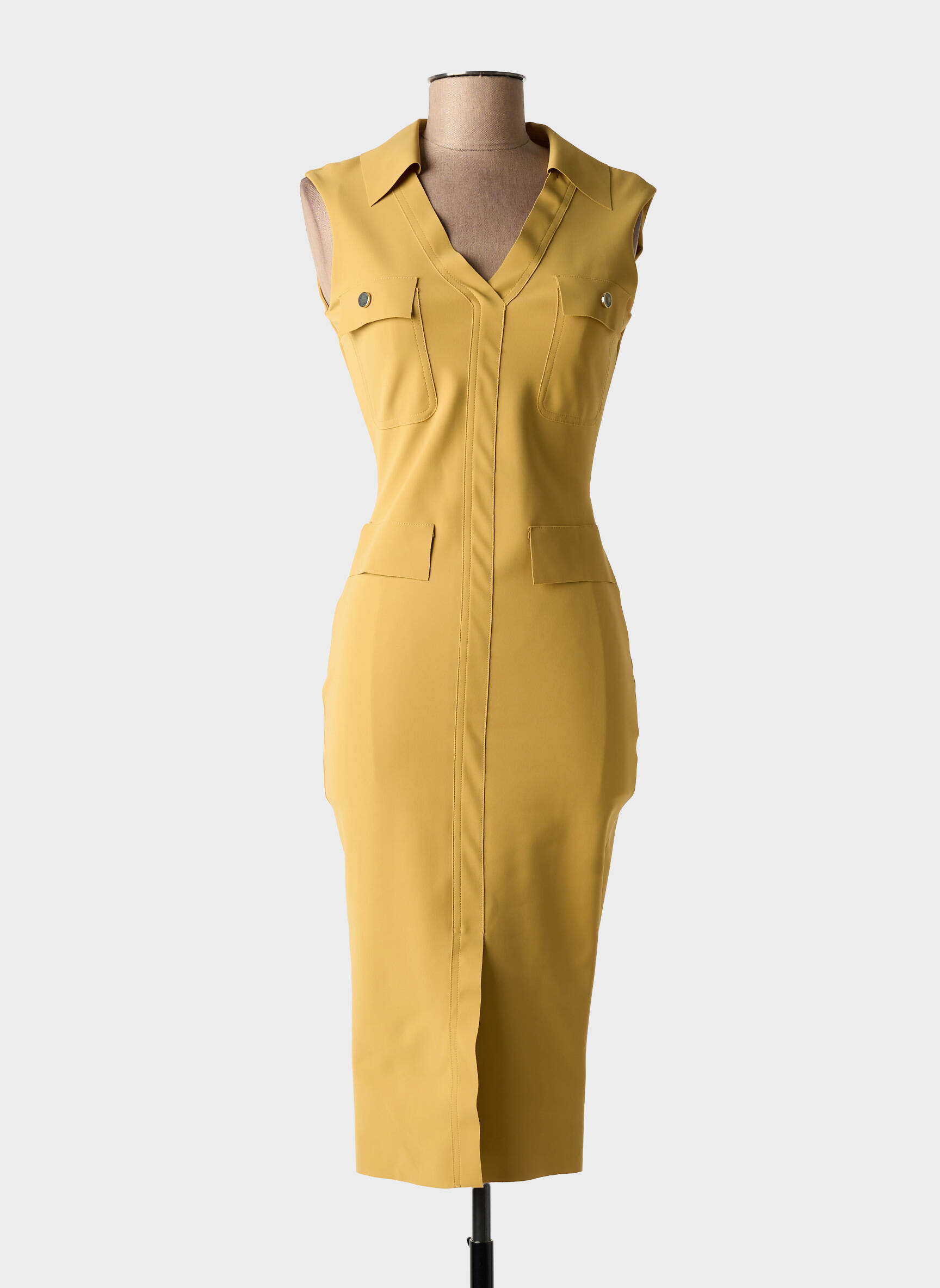 Craquez pour cette robe mi-longue signée CHIARA BONI, une pièce coup de cœur à petit prix pour sublimer votre silhouette avec élégance. Sa coupe sans manches et sa structure cintrée mettent parfaitement en valeur les formes, tandis que le col effet tailleur et les poches à rabat apportent une touche de modernité et de raffinement. La couleur lumineuse illumine votre tenue pour un look aussi chic que tendance, parfait pour profiter d'une belle marque à prix tout doux.
