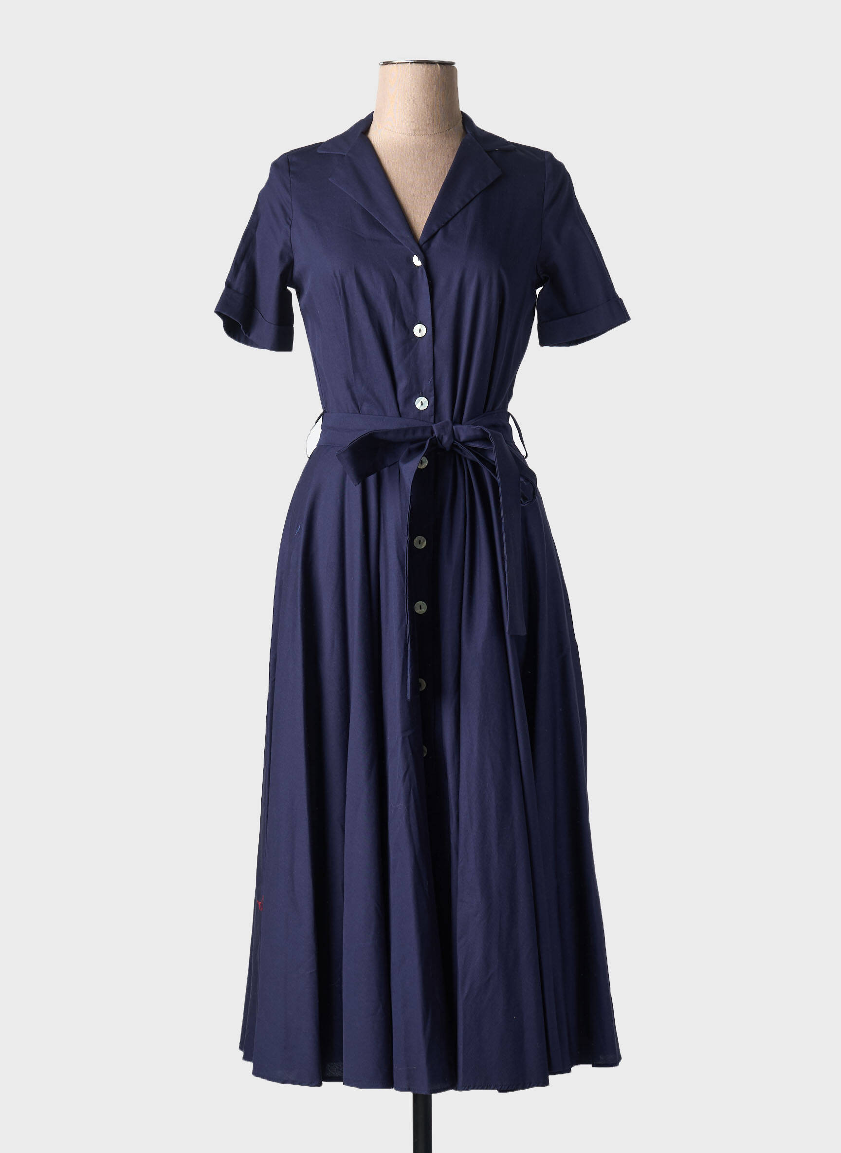 Robe Mi-longue Cottonade Bleu Fonce Manches Courtes