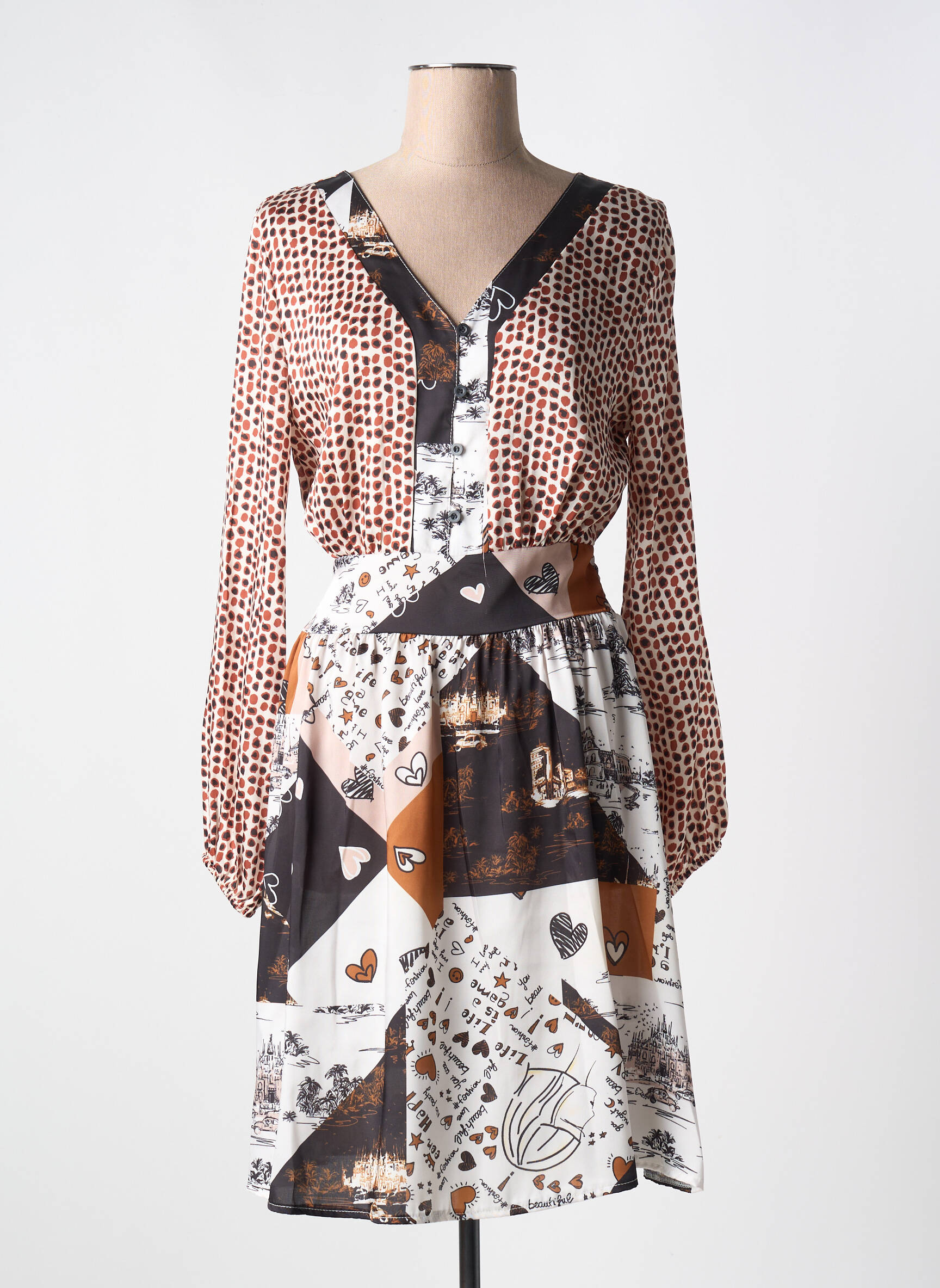 Craquez pour cette robe mi-longue de la marque COULEURS DU TEMPS, une pièce tendance à prix tout doux qui met en valeur votre féminité sans faire exploser votre budget. Son imprimé original mélange des motifs géométriques et des illustrations pour un rendu moderne et élégant, tandis que sa coupe ajustée à la taille et ses manches longues apportent confort et style en toutes circonstances. Profitez d'un bon plan mode pour actualiser votre dressing avec une robe chic et facile à porter au quotidien comme en soirée.