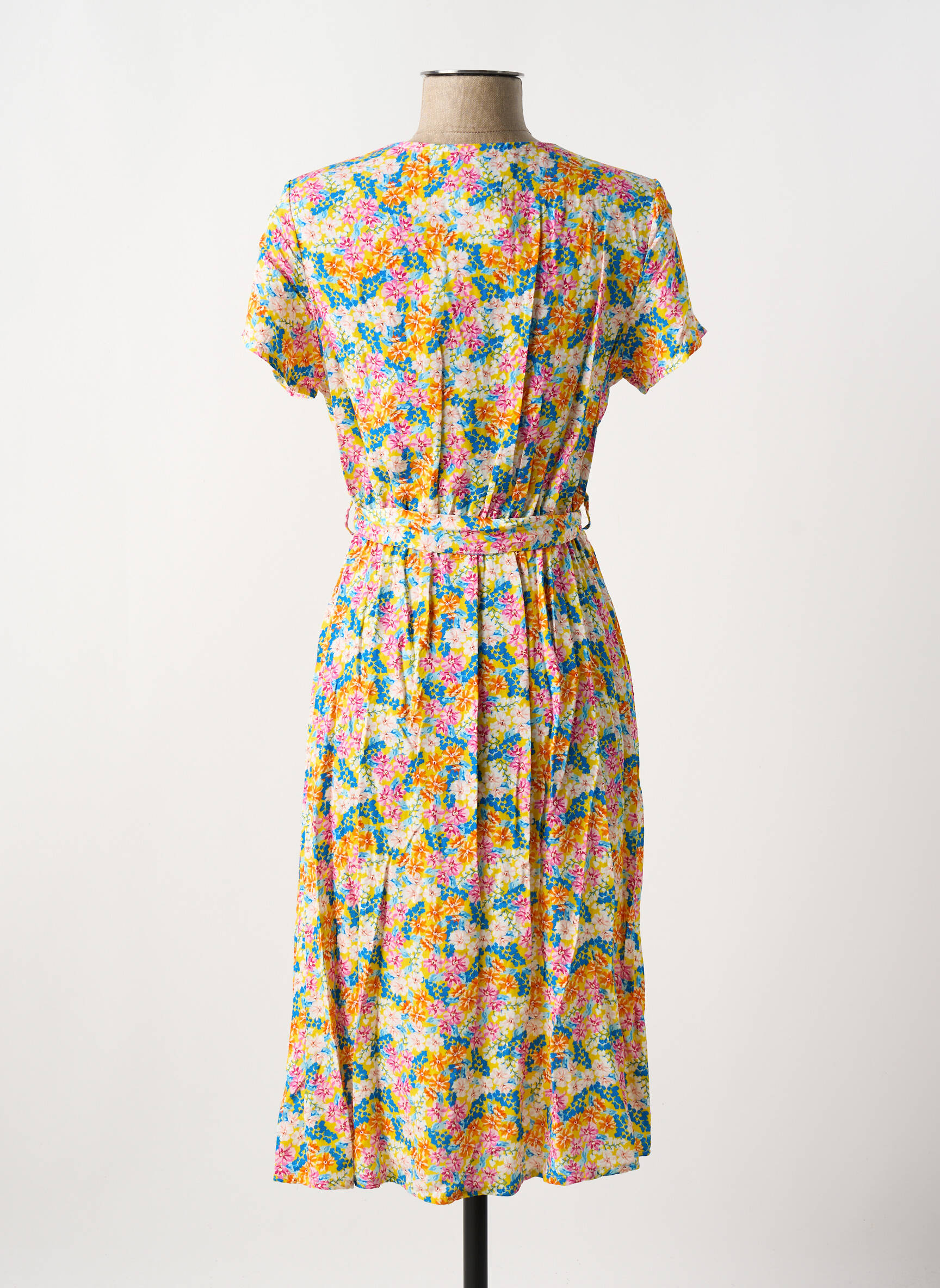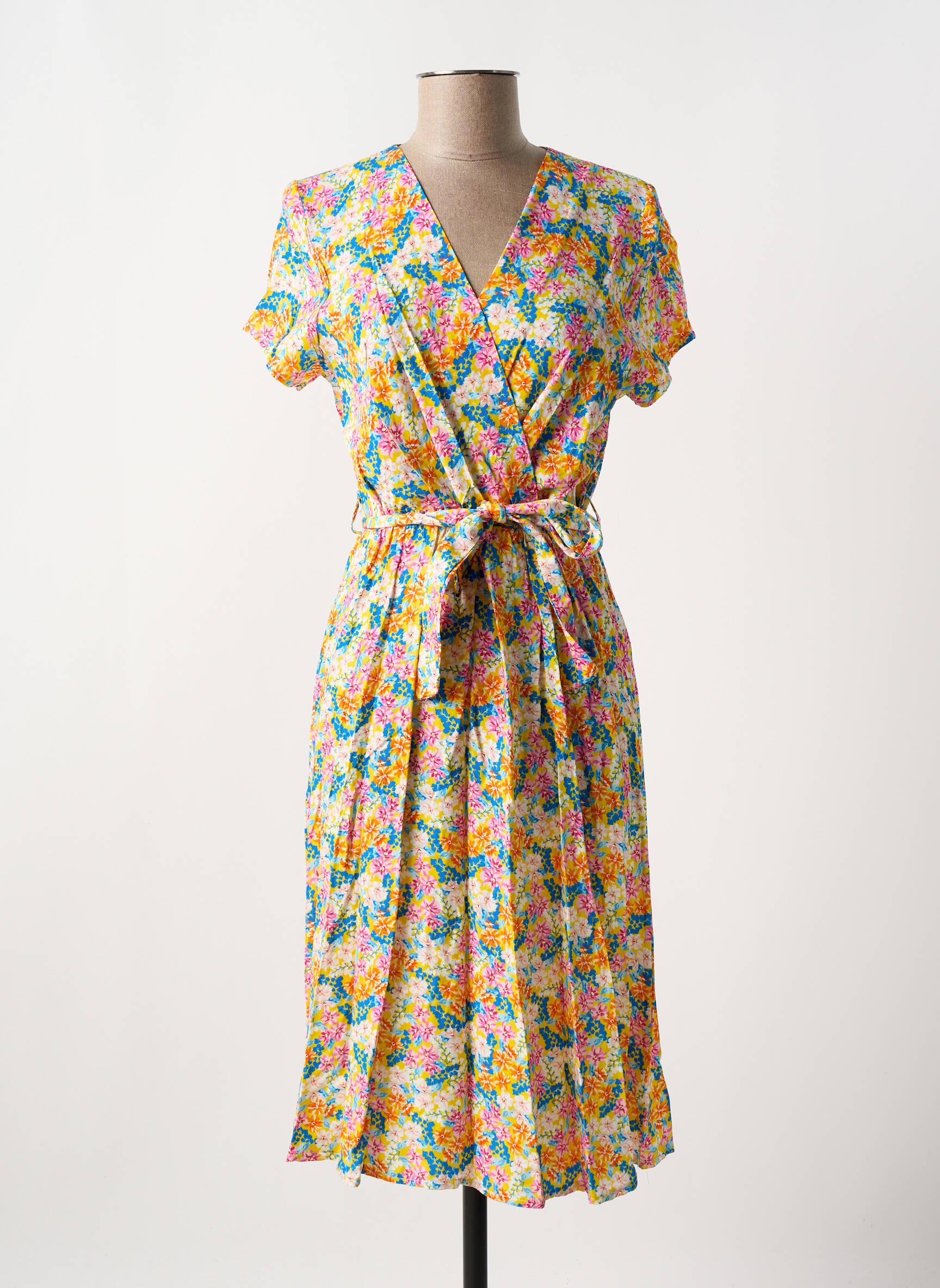 Robe Mi-longue Couleurs Du Temps Jaune Manches Courtes