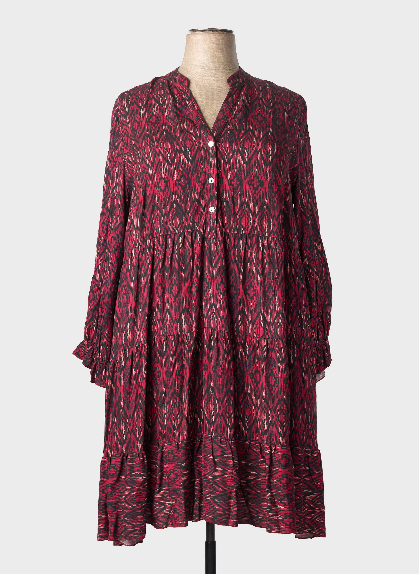 Profitez d’une véritable opportunité avec cette robe mi-longue pour femme signée COULEURS DU TEMPS, idéale pour celles qui veulent renouveler leur garde-robe sans se ruiner. Sa coupe ample et fluide met parfaitement en valeur la silhouette tout en offrant un confort absolu au quotidien, tandis que son imprimé dynamique aux teintes bordeaux apporte une touche de modernité à votre style. Ce modèle boutonné sur le devant et rehaussé de détails plissés séduit par son côté décontracté chic à prix tout doux, parfait pour réaliser de belles économies tout en craquant pour une pièce tendance.