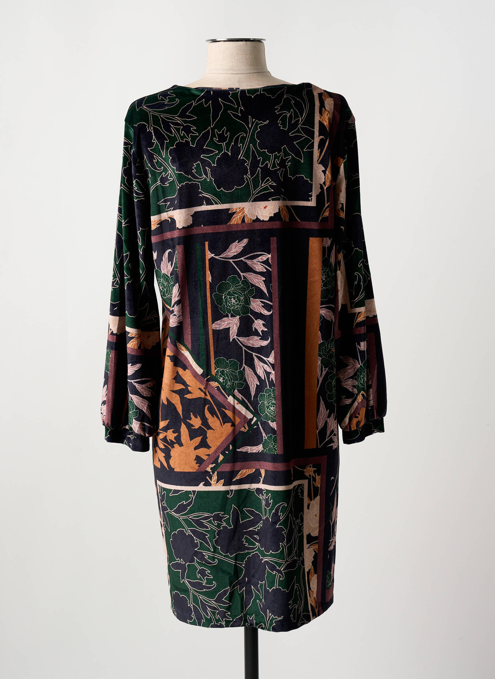 Craquez pour cette robe mi-longue COULEURS DU TEMPS, un vrai bon plan pour renouveler votre garde-robe sans vous ruiner. Son imprimé original mêle des motifs floraux et graphiques, tandis que sa coupe fluide à manches longues et son col en V soulignent à la fois féminité et confort. Grâce à ce modèle tendance à prix mini, offrez-vous une touche de style unique à petit prix.