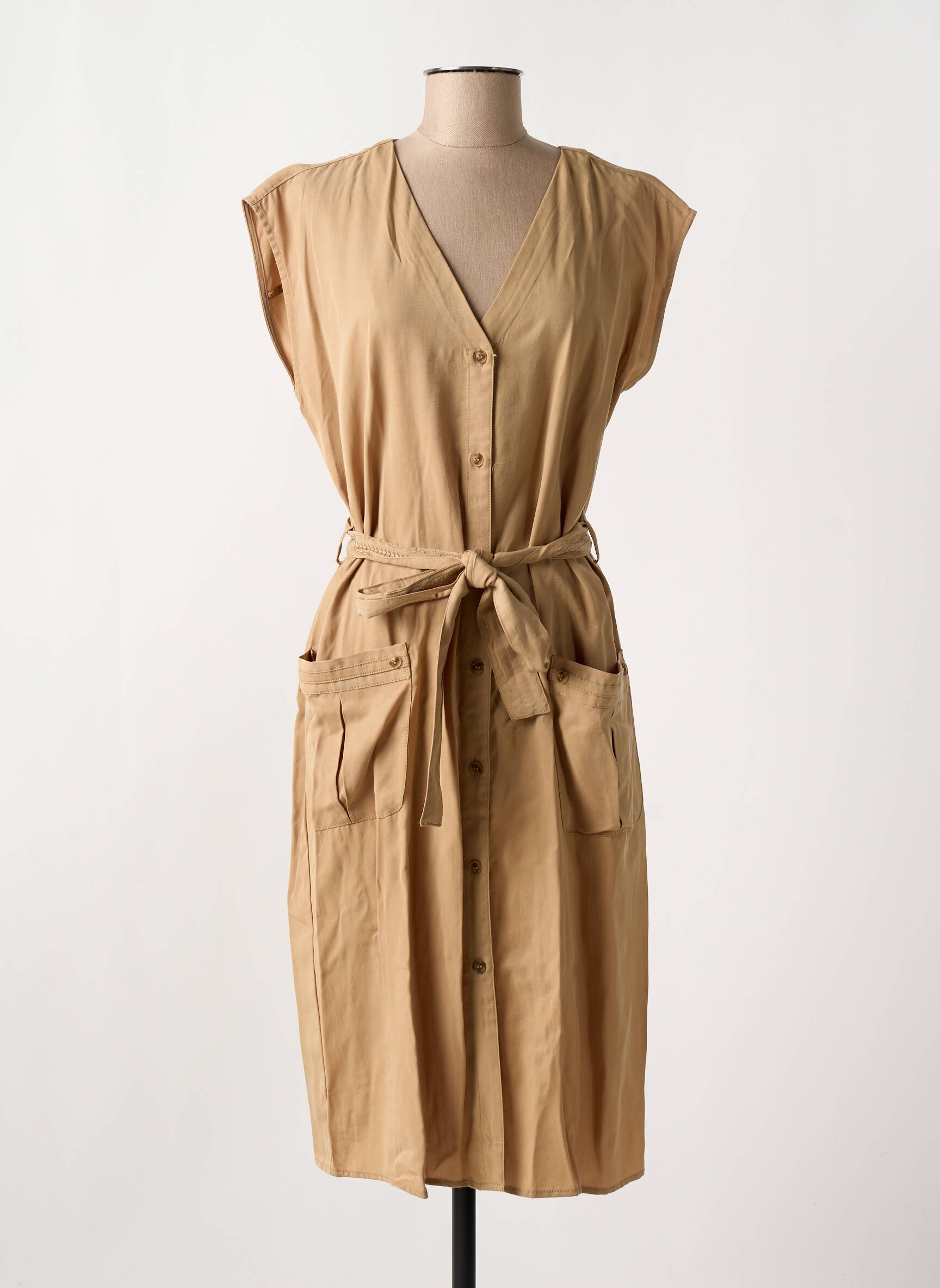 Profitez d’un véritable bon plan avec cette robe mi-longue de la marque CREAM, idéale pour agrémenter votre dressing sans vous ruiner ; sa coupe fluide à manches courtes, son boutonnage élégant sur le devant et sa ceinture à nouer soulignent délicatement la taille tandis que ses grandes poches à l’avant ajoutent une touche pratique et moderne, parfaite pour une allure raffinée à prix mini.