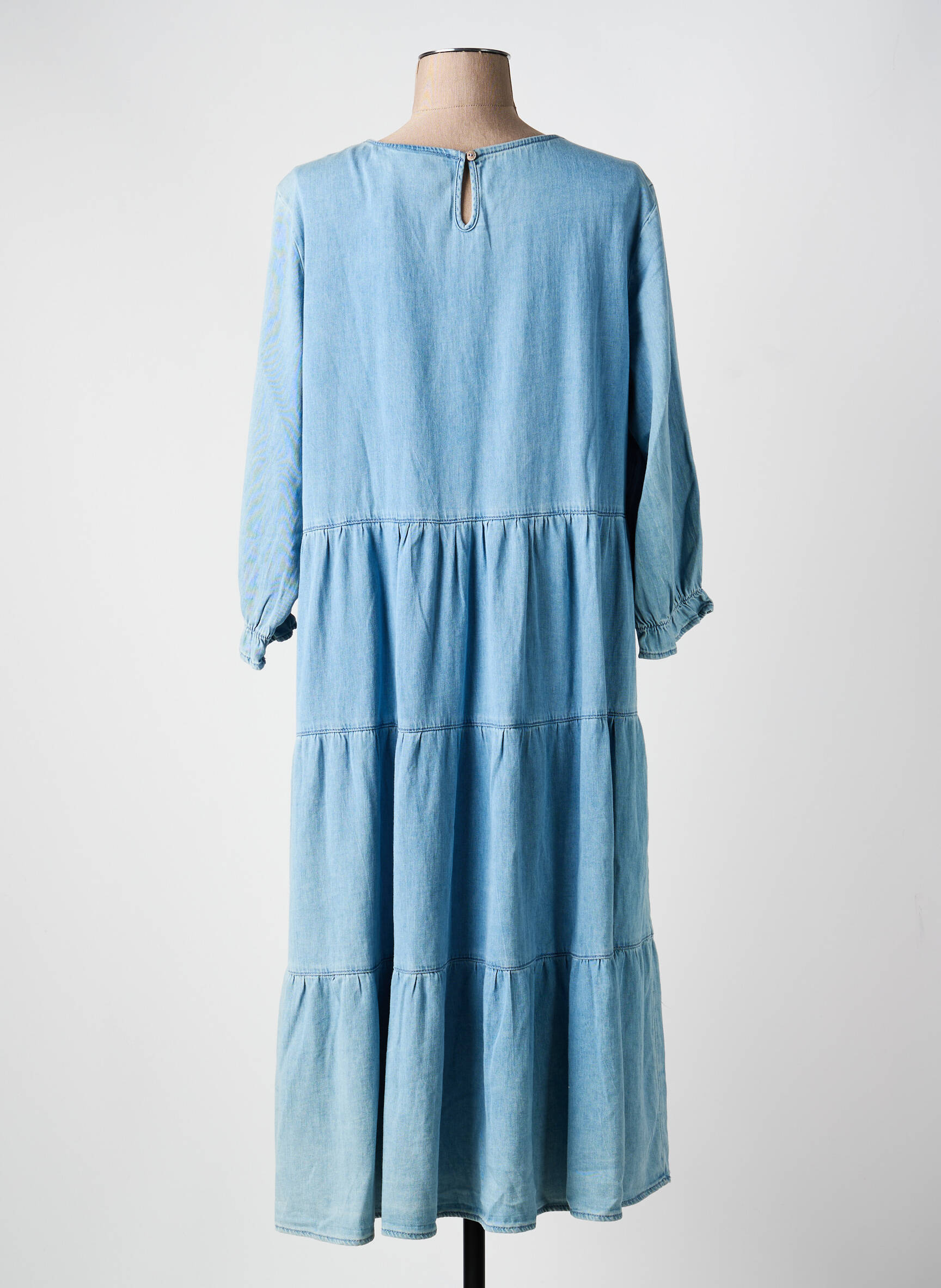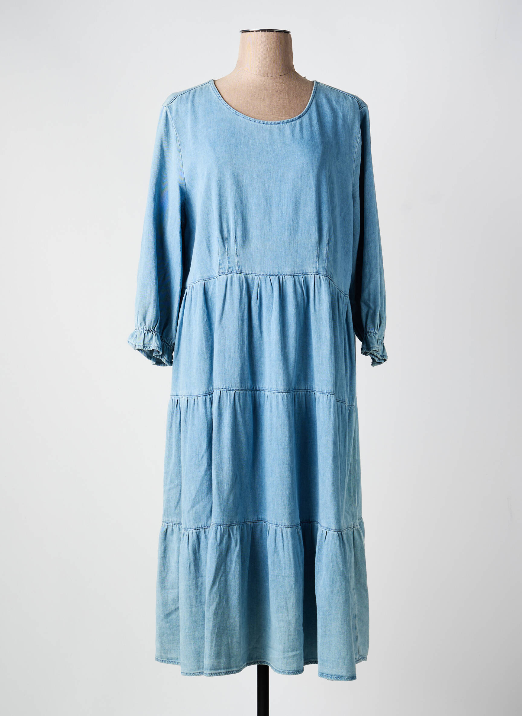 Robe Mi-longue Cream Bleu Manches Longues