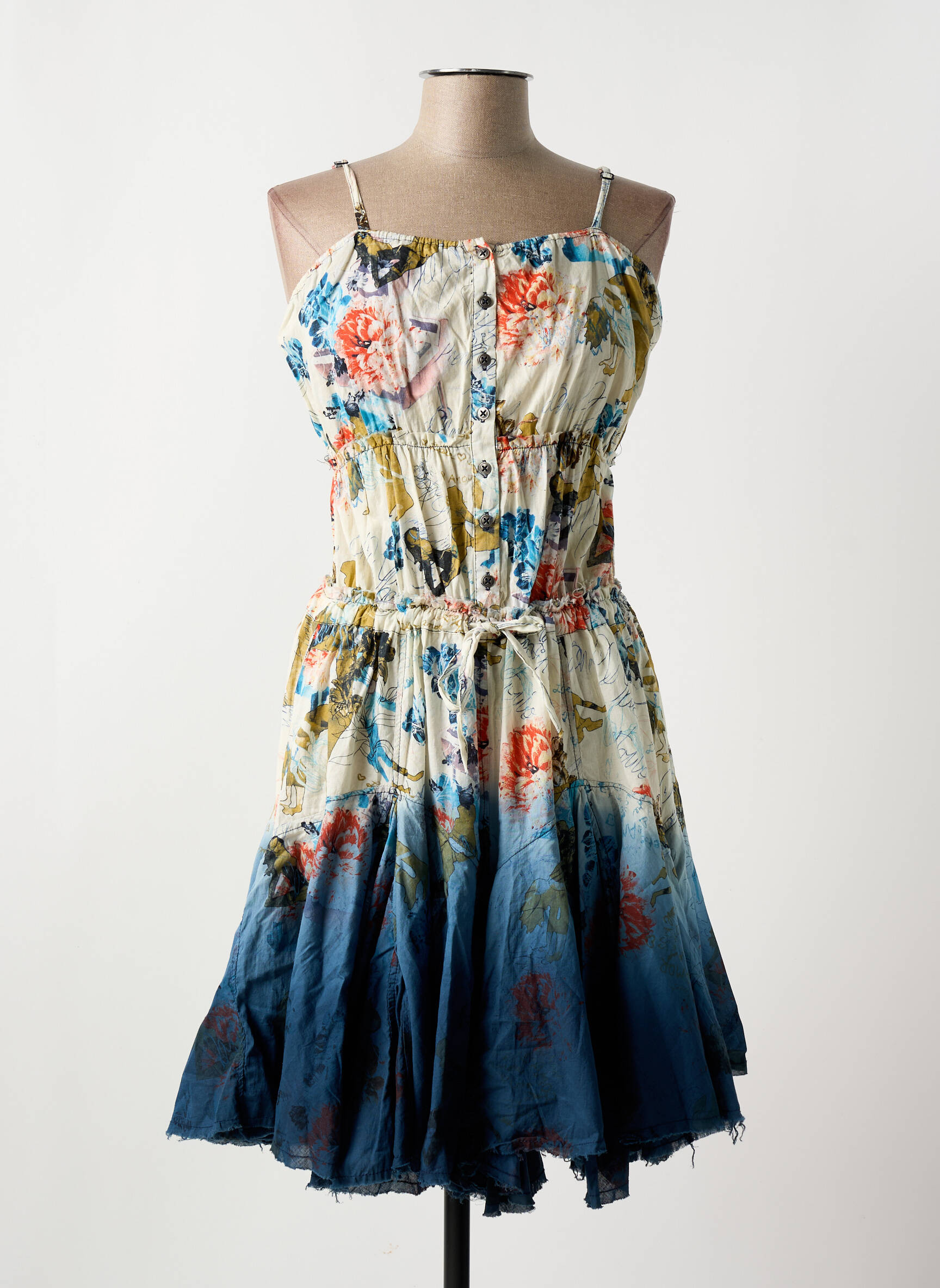 Craquez pour cette robe mi-longue Desigual, un véritable bon plan pour apporter une touche originale et colorée à votre garde-robe sans vous ruiner. Son imprimé floral mêlant des tons chauds à un dégradé bleu apporte fraîcheur et dynamisme à votre silhouette, tandis que sa coupe féminine et ses bretelles fines mettent en valeur votre style tout en vous assurant confort et légèreté. Profitez de l’élégance unique Desigual à prix mini et faites-vous plaisir avec une pièce tendance qui attire tous les regards.