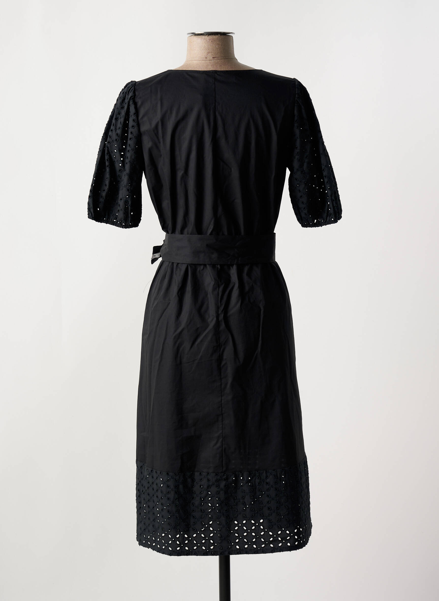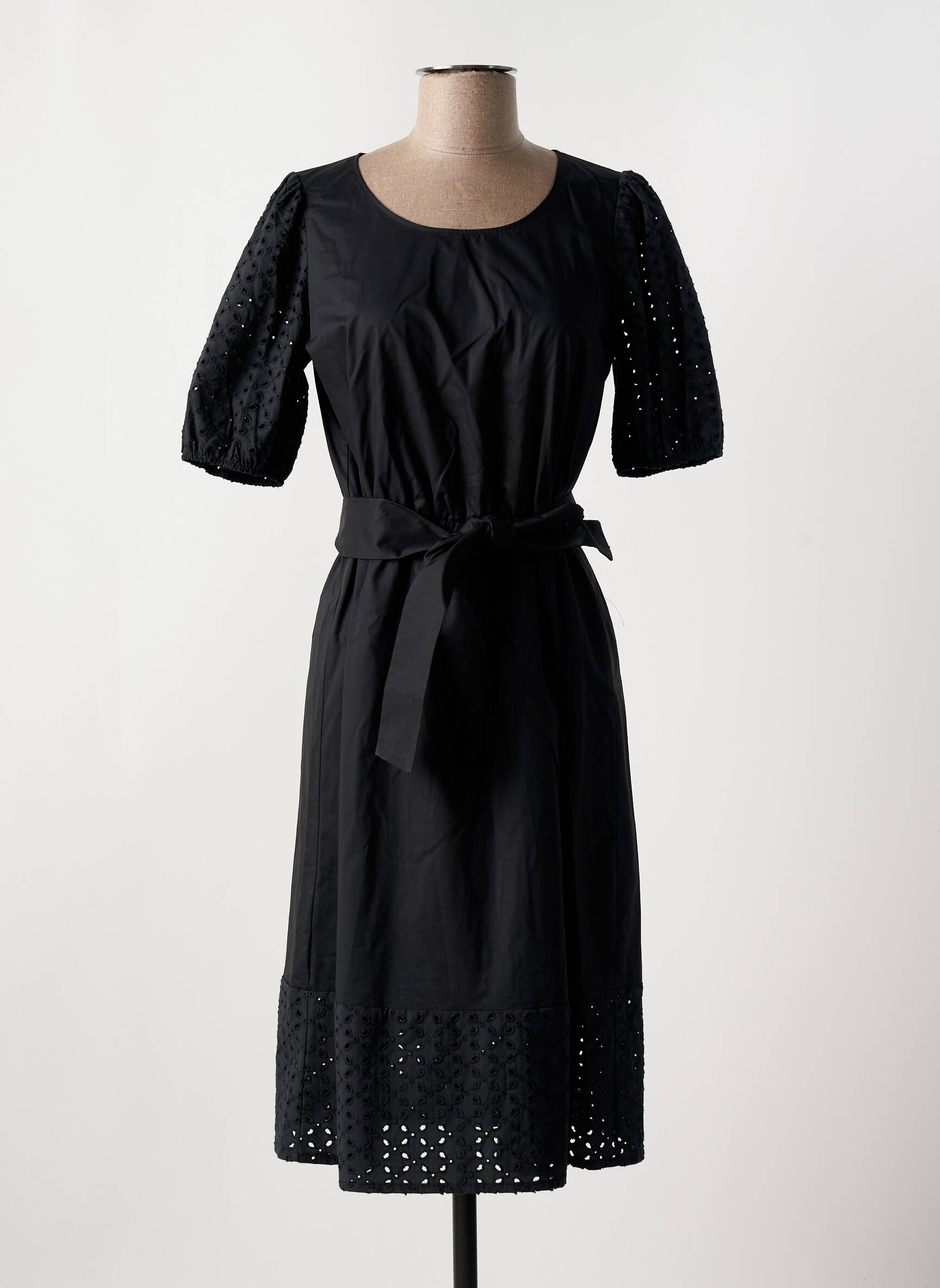 Profitez d’un vrai bon plan avec cette robe mi-longue DIANA GALLESI, parfaite pour allier élégance et petits prix. Son tissu noir uni est sublimé par des manches courtes ajourées et une jolie finition ajourée en bas de robe, tandis qu’une ceinture vient délicatement marquer la taille pour une silhouette féminine. L’occasion idéale de vous offrir une pièce chic et intemporelle à prix doux.