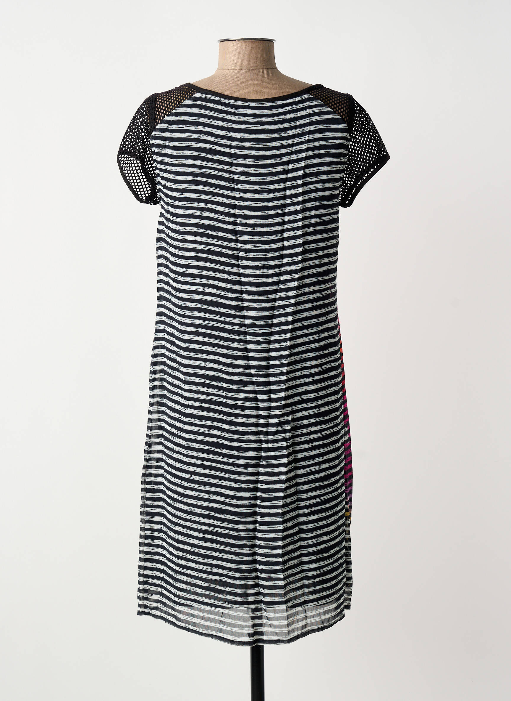 Succombez à l’appel des bonnes affaires avec cette robe mi-longue de la marque DIVAS, parfaite pour apporter une touche originale à votre garde-robe sans vous ruiner. Avec son imprimé fantaisie coloré sur un fond à rayures noir et blanc et ses manches courtes en maille ajourée, elle offre un style à la fois créatif et moderne. Son tombé fluide et léger convient à toutes les occasions du quotidien tout en assurant un confort optimal, le tout à prix mini. N’attendez plus pour vous offrir cette pièce unique qui allie look tendance et économies.