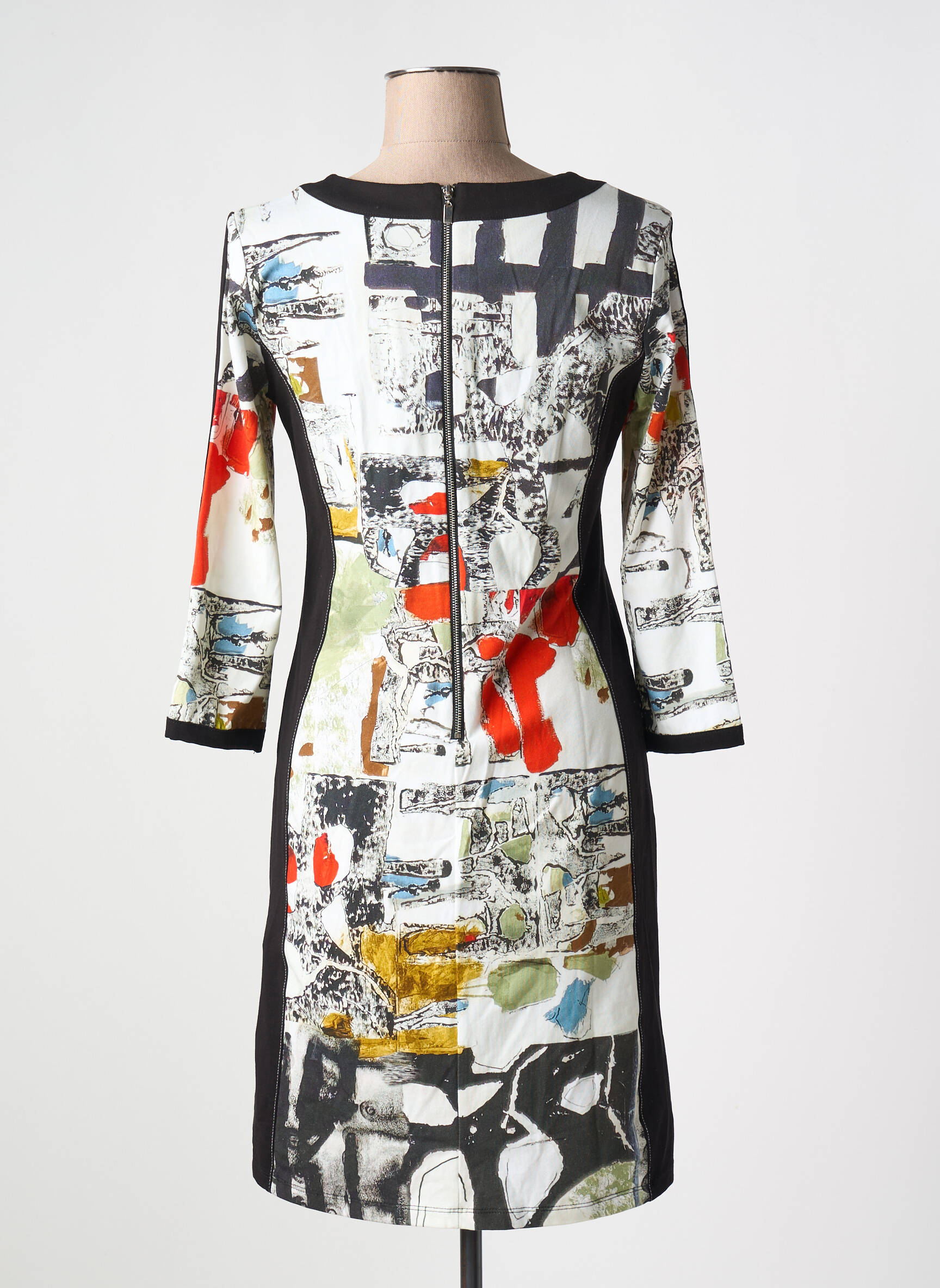 Craquez pour cette robe mi-longue DOLCEZZA, une véritable affaire à ne pas laisser passer pour apporter une touche artistique à votre dressing sans vous ruiner. Avec son motif graphique multicolore et ses empiècements noirs qui structurent la silhouette, elle offre un look moderne et dynamique parfait pour toutes les occasions. Sa coupe confortable à manches trois-quarts épouse la ligne du corps tout en sublimant la posture, pour rester élégante du matin au soir à prix mini.