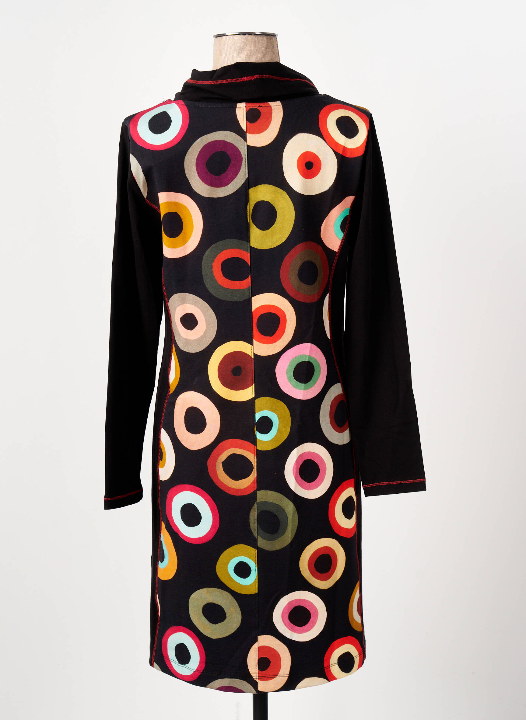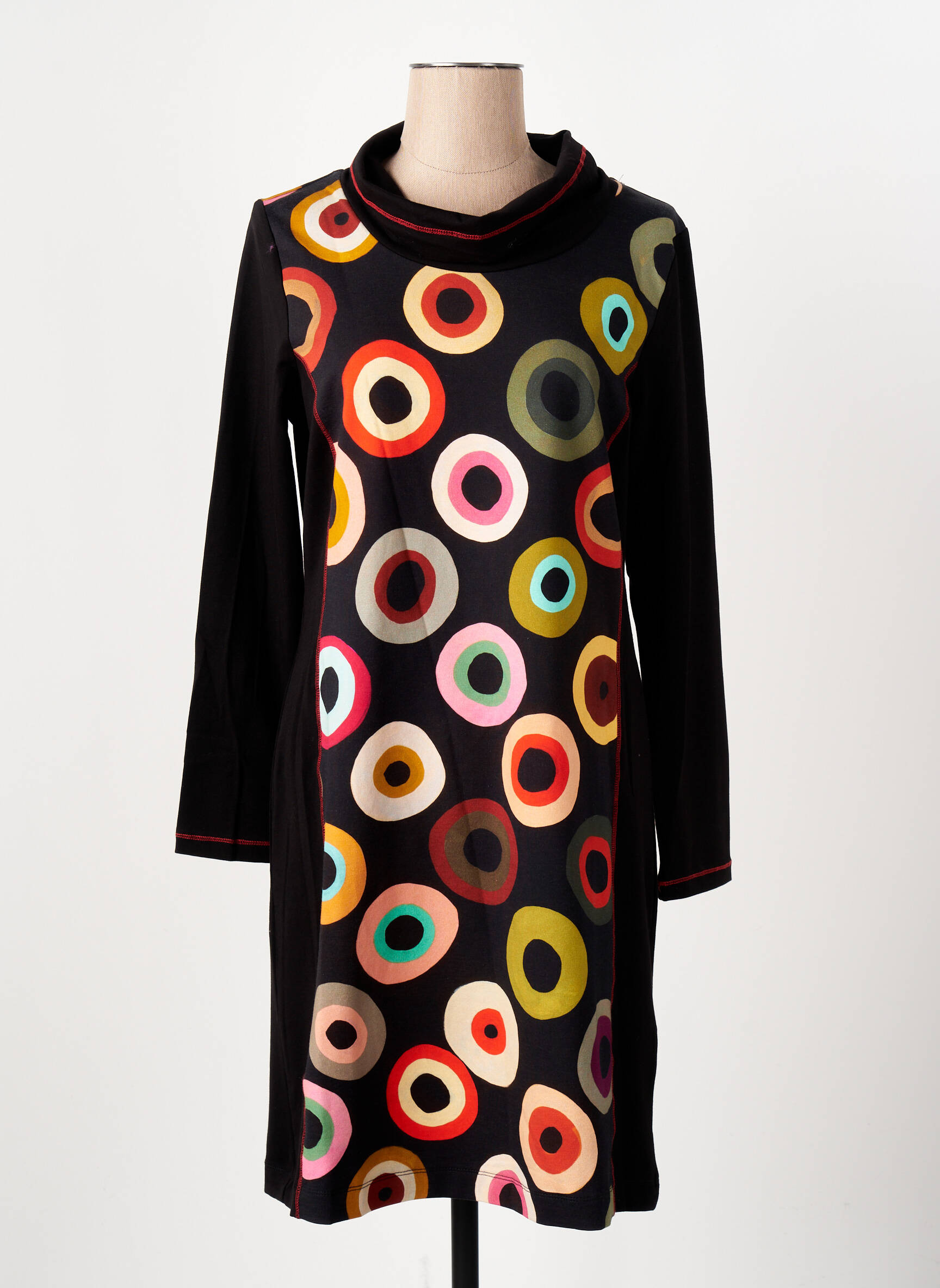 Craquez pour cette robe mi-longue signée Dolcezza à prix tout doux, idéale pour apporter une touche artistique à votre garde-robe sans vous ruiner. Son imprimé graphique multicolore sur fond noir et sa coupe féminine à manches longues offrent à la fois confort et originalité, parfaite pour dynamiser vos looks du quotidien tout en profitant d’un bon plan mode.