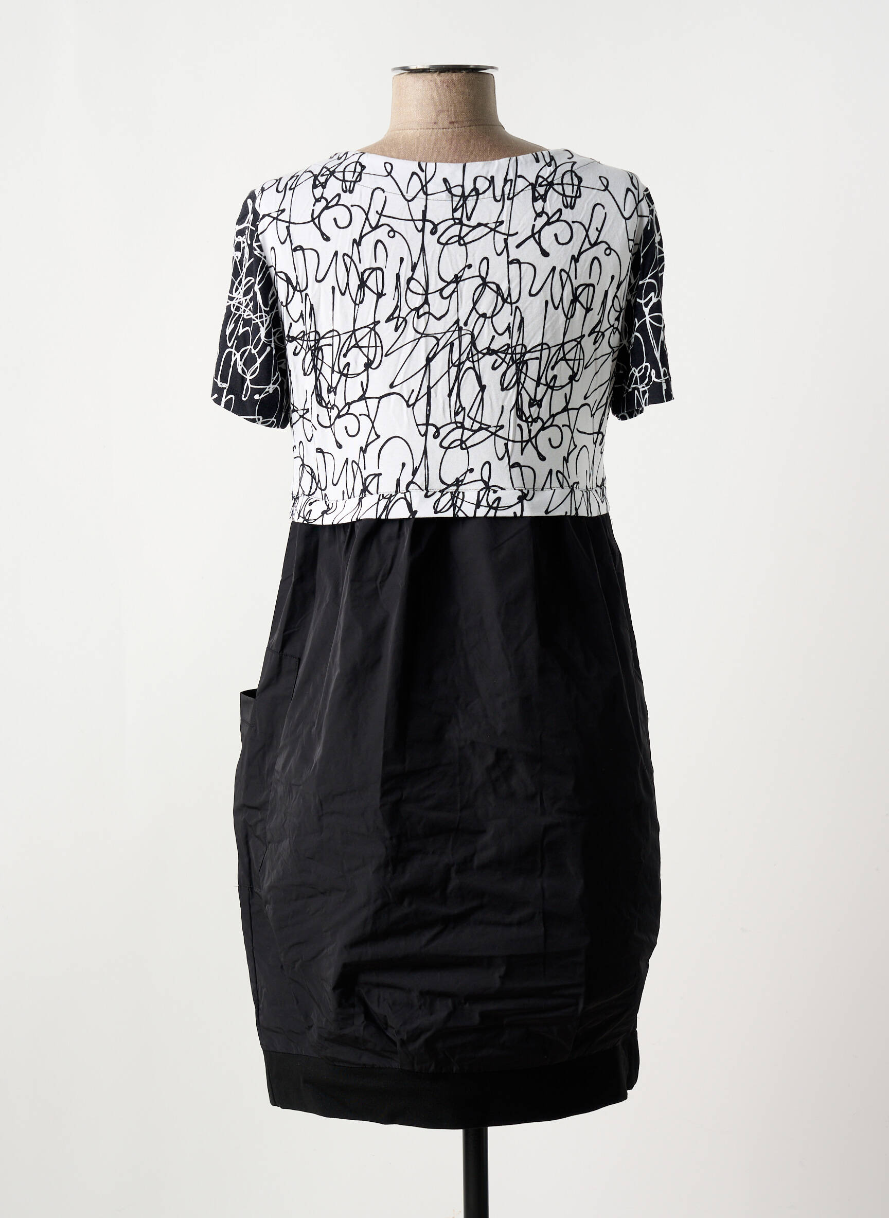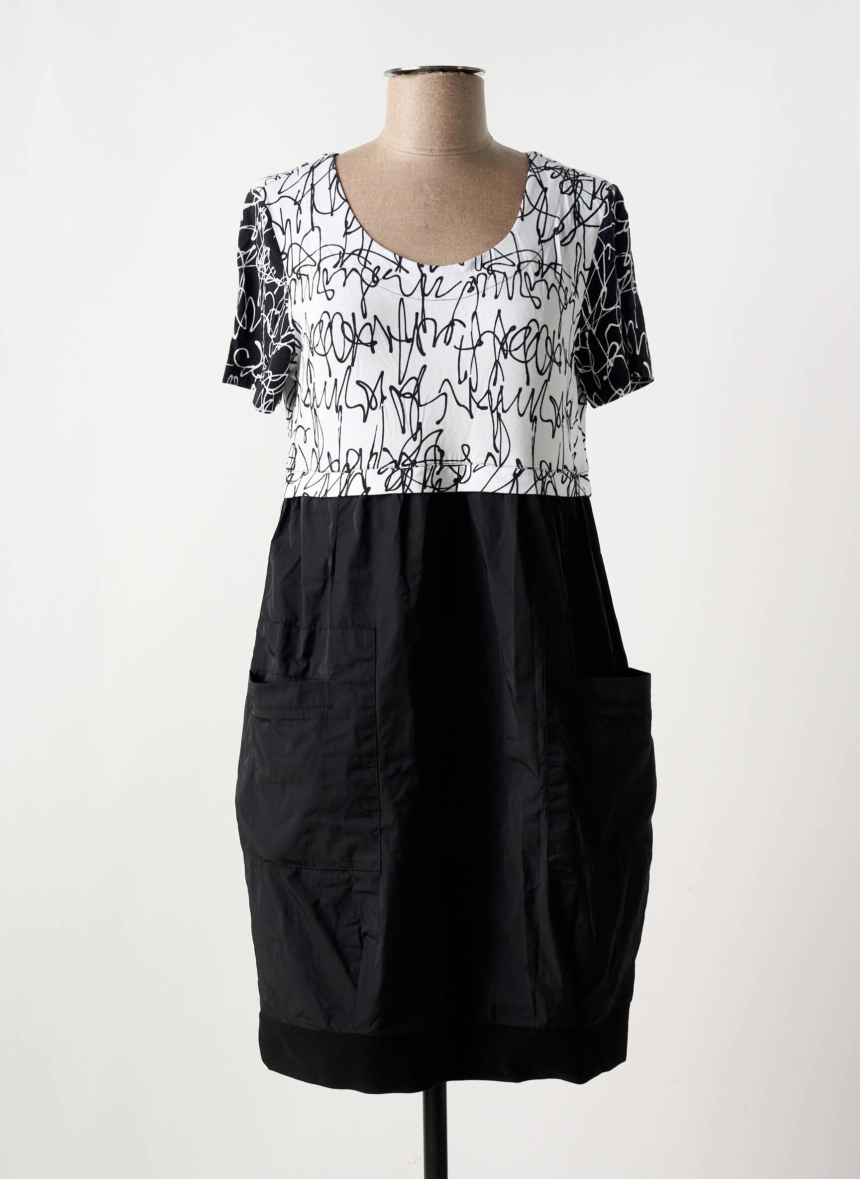 Craquez pour cette robe mi-longue de la marque DOLCEZZA à prix mini, parfaite pour allier style et économies sans compromis. Ce modèle élégant séduit par son haut blanc orné de motifs graphiques noirs au style artistique, rehaussé d’un col rond féminin et de manches courtes, tandis que sa jupe noire se distingue par une coupe fluide et deux poches pratiques sur les côtés. Idéale à porter au quotidien comme en sortie, elle vous assure une allure moderne et tendance tout en profitant d’un vrai bon plan mode.