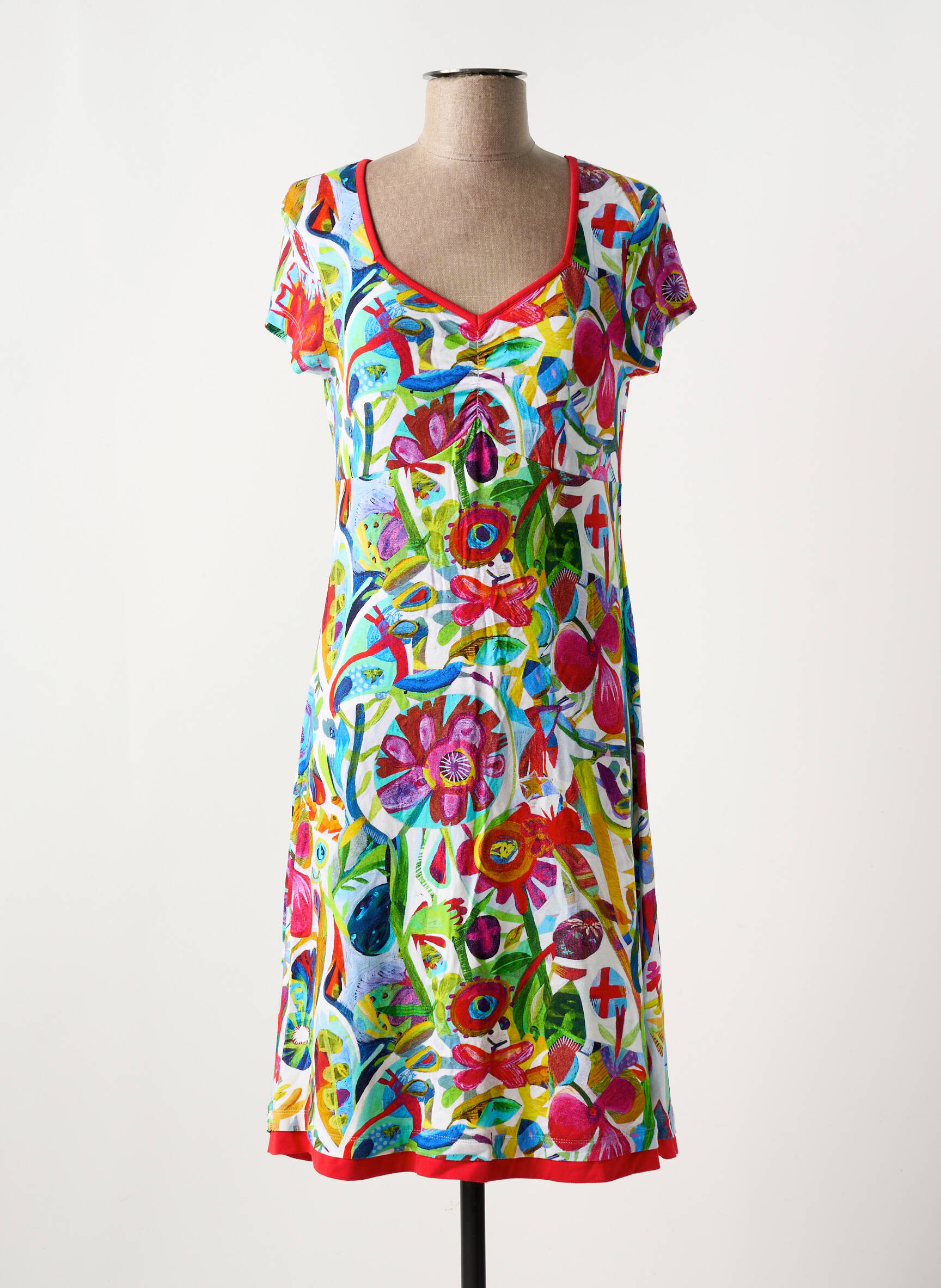 Craquez pour cette robe mi-longue Dolcezza, une véritable explosion de couleurs à prix mini qui ne passera pas inaperçue. Son imprimé floral multicolore apporte une touche artistique et pétillante, idéale pour égayer votre dressing sans vous ruiner. Avec son joli col en V et sa coupe fluide, elle offre une silhouette féminine et confortable, parfaite pour les beaux jours ou pour donner du pep’s à votre quotidien, le tout à un prix tout doux grâce au déstockage.