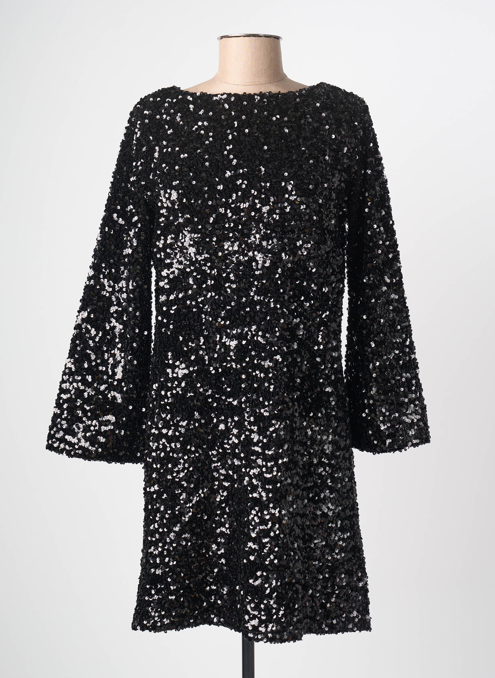 Profitez d’un bon plan irrésistible avec cette robe mi-longue ELÈSIG pour femme qui allie élégance et tendance à petit prix, parfaite pour illuminer vos soirées grâce à son tissu entièrement recouvert de sequins noirs qui captent la lumière et offrent un effet scintillant incomparable, tout en assurant un tombé fluide et moderne avec ses manches longues légèrement évasées et sa coupe droite intemporelle, idéale pour un look chic sans se ruiner.