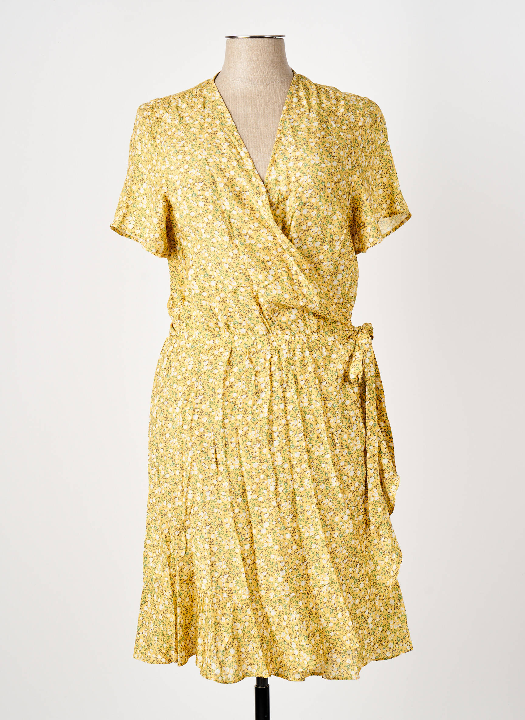 Imaginez une robe mi-longue qui capture toute la douceur d'un après-midi ensoleillé, c'est exactement ce que propose cette création légère et fluide de la marque ELORA, ornée d'un délicat imprimé floral jaune et blanc. Son col en V généreusement croisé sublime élégamment la silhouette tandis que la taille marquée par une ceinture à nouer apporte une touche féminine et ajustée, offrant un tomber naturel et aérien accentué par une jupe aux légers plis qui dansent à chaque pas. Les manches courtes ajoutent une note de simplicité confortable, parfaite pour les journées où l’on souhaite conjuguer style et légèreté avec finesse.