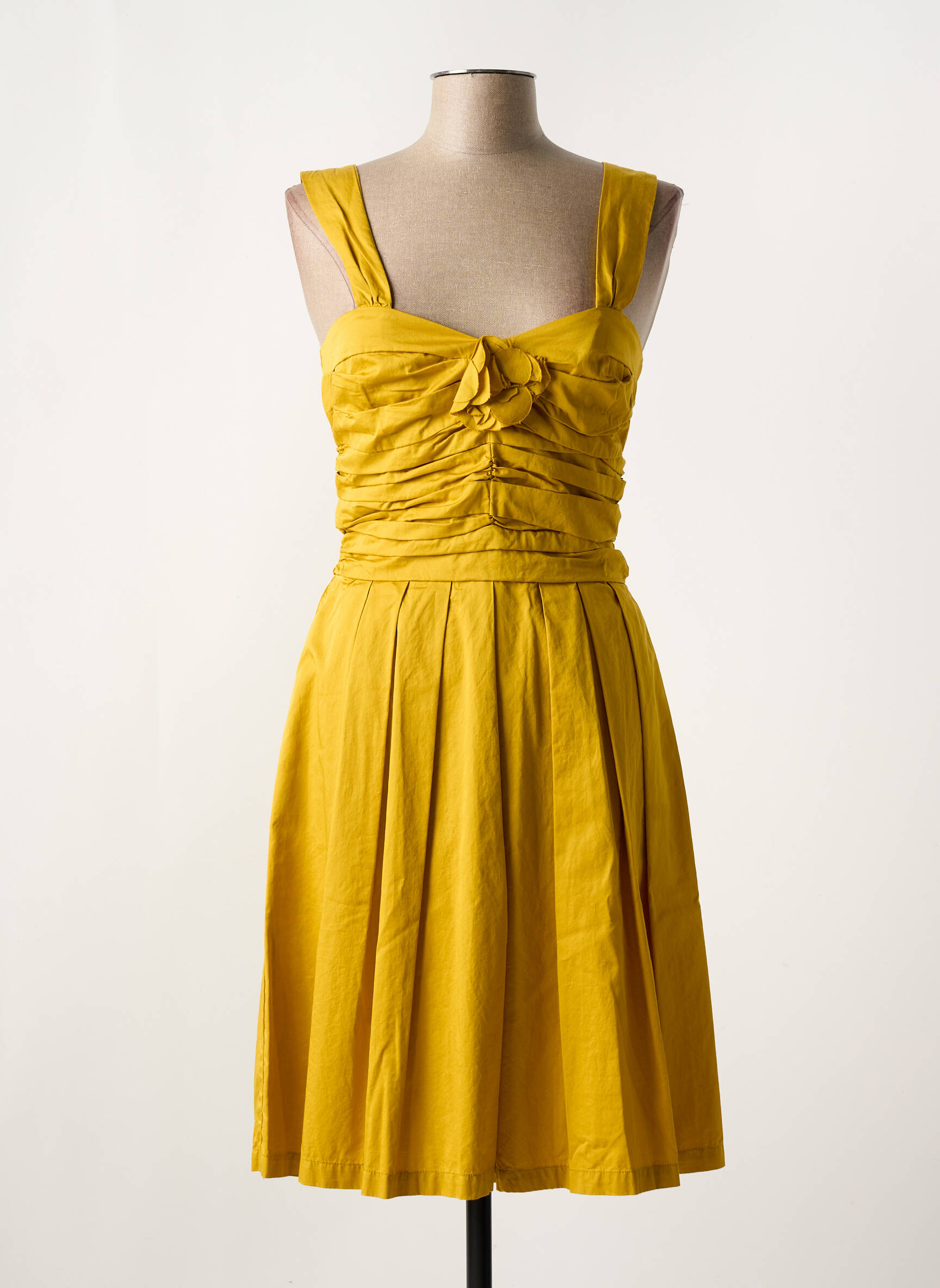 Craquez pour cette robe mi-longue FAIRLY pour femme, une véritable opportunité à petit prix pour apporter une touche de soleil à votre garde-robe. Son tissu lumineux aux reflets curry illumine la silhouette, tandis que la taille marquée et le jeu de fronces sur le buste subliment la féminité avec élégance. Parfaite pour les beaux jours ou une sortie estivale, cette robe iconique saura vous séduire par son allure chic et moderne, le tout sans faire exploser votre budget.