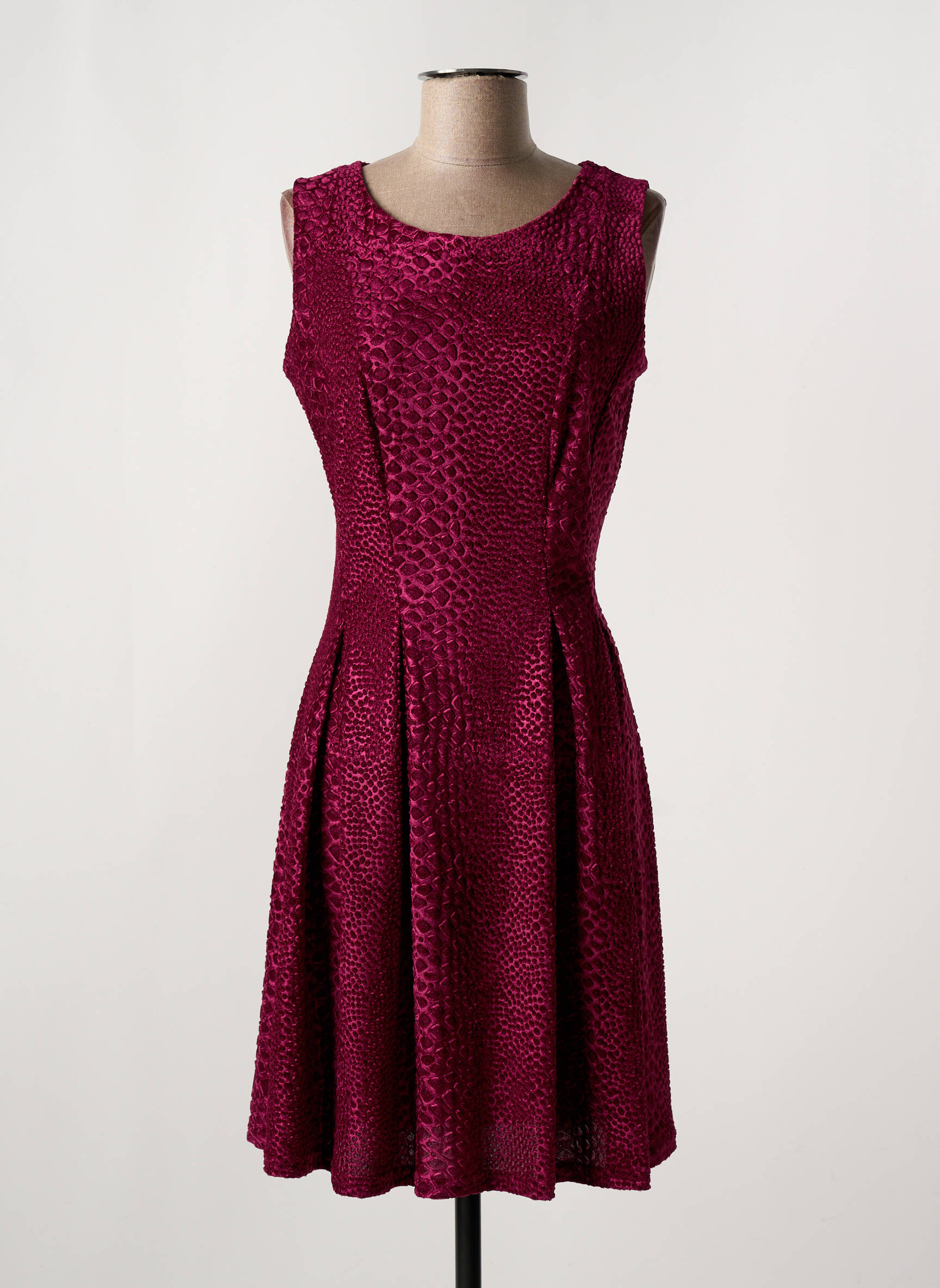 Voici l'occasion de craquer sans se ruiner avec cette robe mi-longue signée FILLE A SUIVRE, idéale pour ajouter une touche d'élégance à petit prix dans votre dressing. Son tissu texturé façon animalier dans une nuance bordeaux ravive la silhouette tandis que sa coupe sans manches flatte la ligne avec raffinement. C'est le bon plan mode à saisir pour celles qui cherchent style et économies sur une pièce chic et tendance.