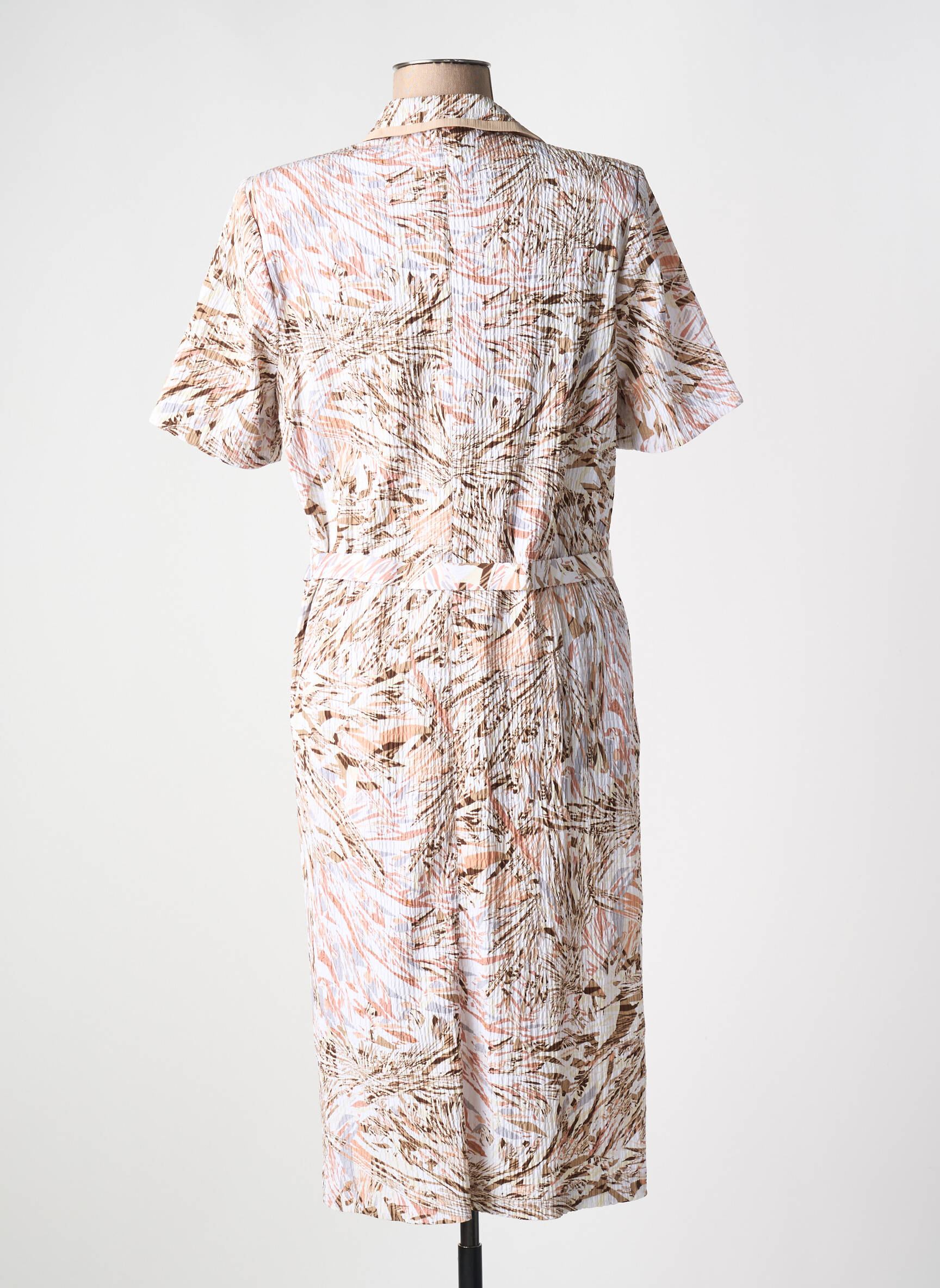 Profitez d’un bon plan en adoptant cette robe mi-longue de la marque FRANCE RIVOIRE à prix tout doux, idéale pour renouveler votre garde-robe sans vous ruiner. Son motif feuillage aux tons naturels apporte une touche de fraîcheur et de modernité, tandis que sa coupe chemisier boutonnée et sa ceinture intégrée soulignent subtilement la silhouette pour un look féminin et confortable au quotidien. C’est la pièce parfaite pour allier élégance et économie lors de vos sorties printanières ou estivales.