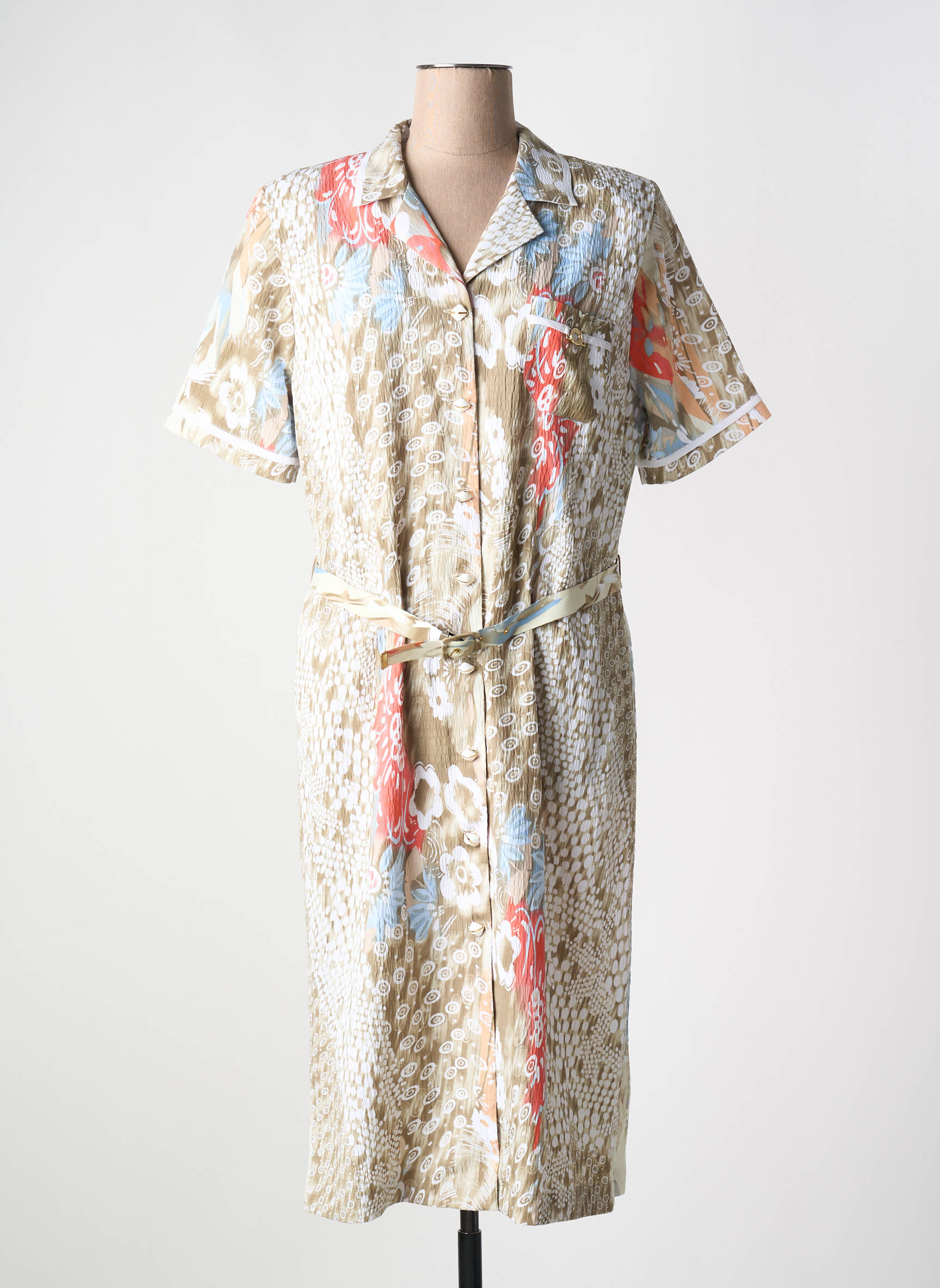 Craquez pour cette robe mi-longue France Rivoire, un véritable bon plan pour apporter une touche de fraîcheur et d’originalité à votre garde-robe sans vous ruiner. Sa coupe classique à manches courtes, sublimée par un imprimé délicat aux notes beiges relevées de touches bleu pastel et corail, s’accompagne d’une ceinture assortie qui souligne joliment la taille pour une silhouette féminine et confortable. C’est la pièce parfaite pour allier élégance décontractée et petit prix, idéale pour toutes celles qui aiment faire des économies tout en profitant de la qualité boutique.