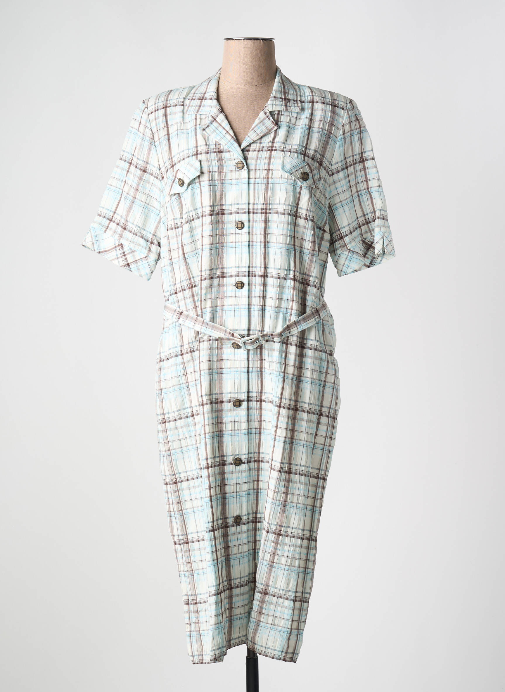 Craquez pour cette robe mi-longue France Rivoire à prix mini, idéale pour celles qui veulent se faire plaisir sans se ruiner. Sa coupe droite et légèrement cintrée par une ceinture assortie sublime la silhouette, tandis que l’imprimé à carreaux dans les tons doux donne une allure décontractée et tendance. Les détails comme les poches boutonnées au niveau de la poitrine et la patte de boutonnage sur toute la longueur apportent une touche authentique et pratique. C’est le compromis parfait entre élégance et économie, pour un look casual-chic accessible à toutes.