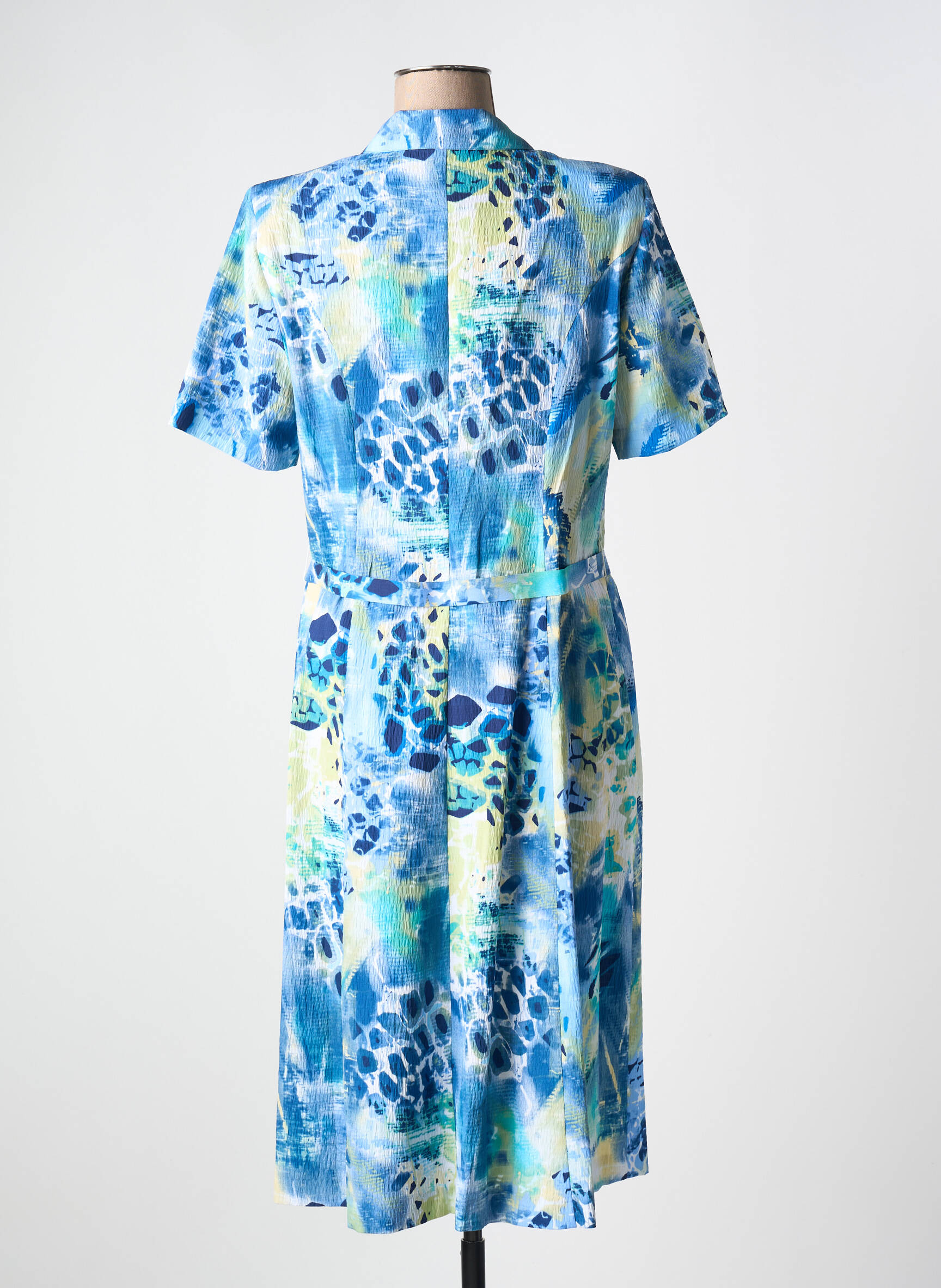 Profitez d’une occasion irrésistible avec cette robe mi-longue signée FRANCE RIVOIRE, une pièce idéale pour renouveler votre garde-robe à petit prix tout en misant sur l’élégance. Son imprimé aux nuances de bleu et de jaune apporte une touche de fraîcheur et d’originalité, tandis que la ceinture assortie souligne délicatement la taille pour une silhouette féminine. Cette robe boutonnée à manches courtes s’adapte aussi bien à une sortie estivale qu’à une journée plus habillée, combinant style et économie grâce à notre sélection de bonnes affaires multi-marques.