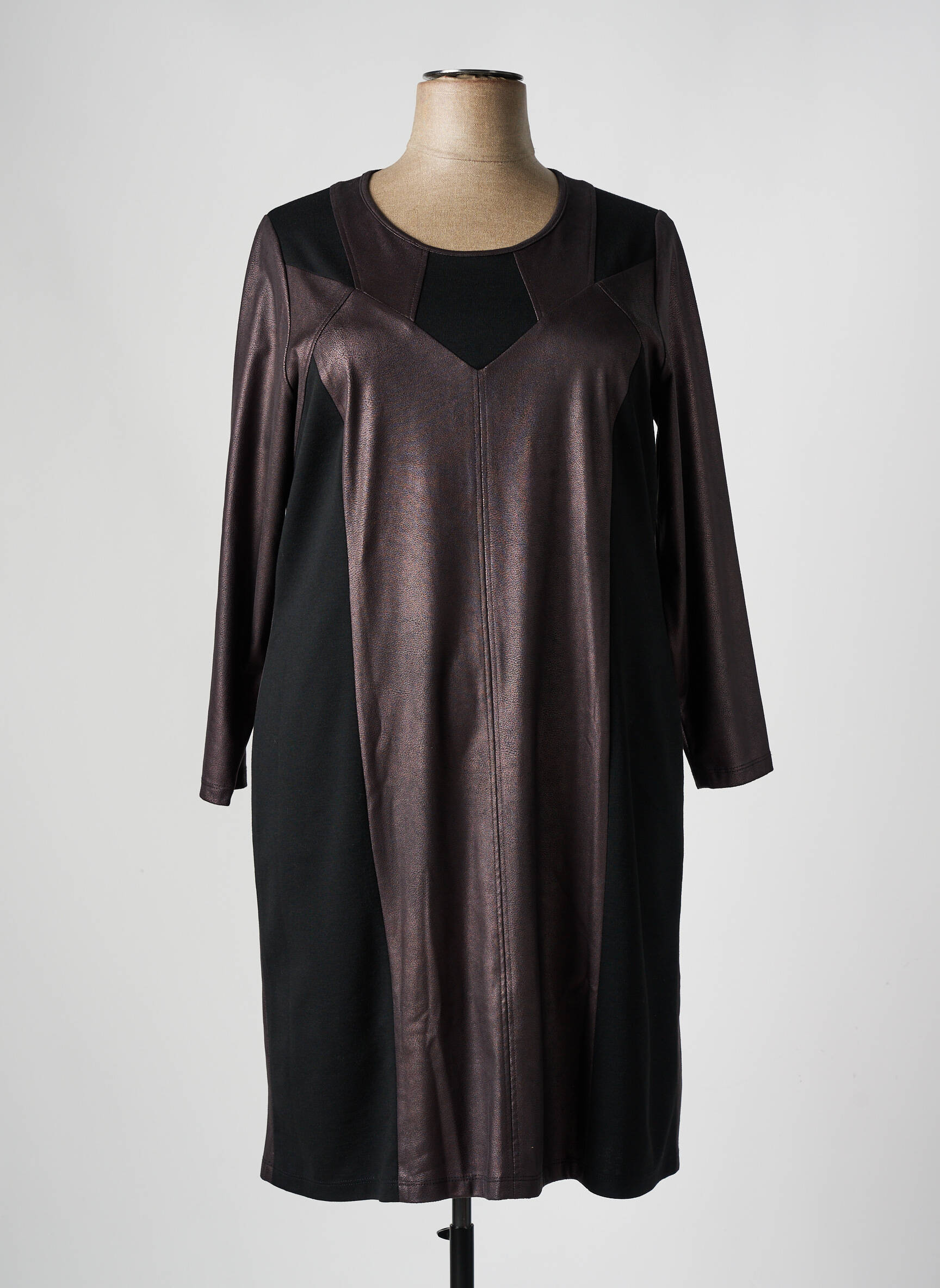 Optez pour un look chic à prix mini avec cette robe mi-longue FRANCE RIVOIRE pour femme, une pièce élégante qui combine un effet métallisé subtil sur le devant et des panneaux noirs sur les côtés pour une silhouette affinée et moderne. Les manches longues et l'encolure discrète en font un choix idéal pour vos sorties ou pour le bureau, parfait pour celles qui veulent se faire plaisir sans se ruiner.
