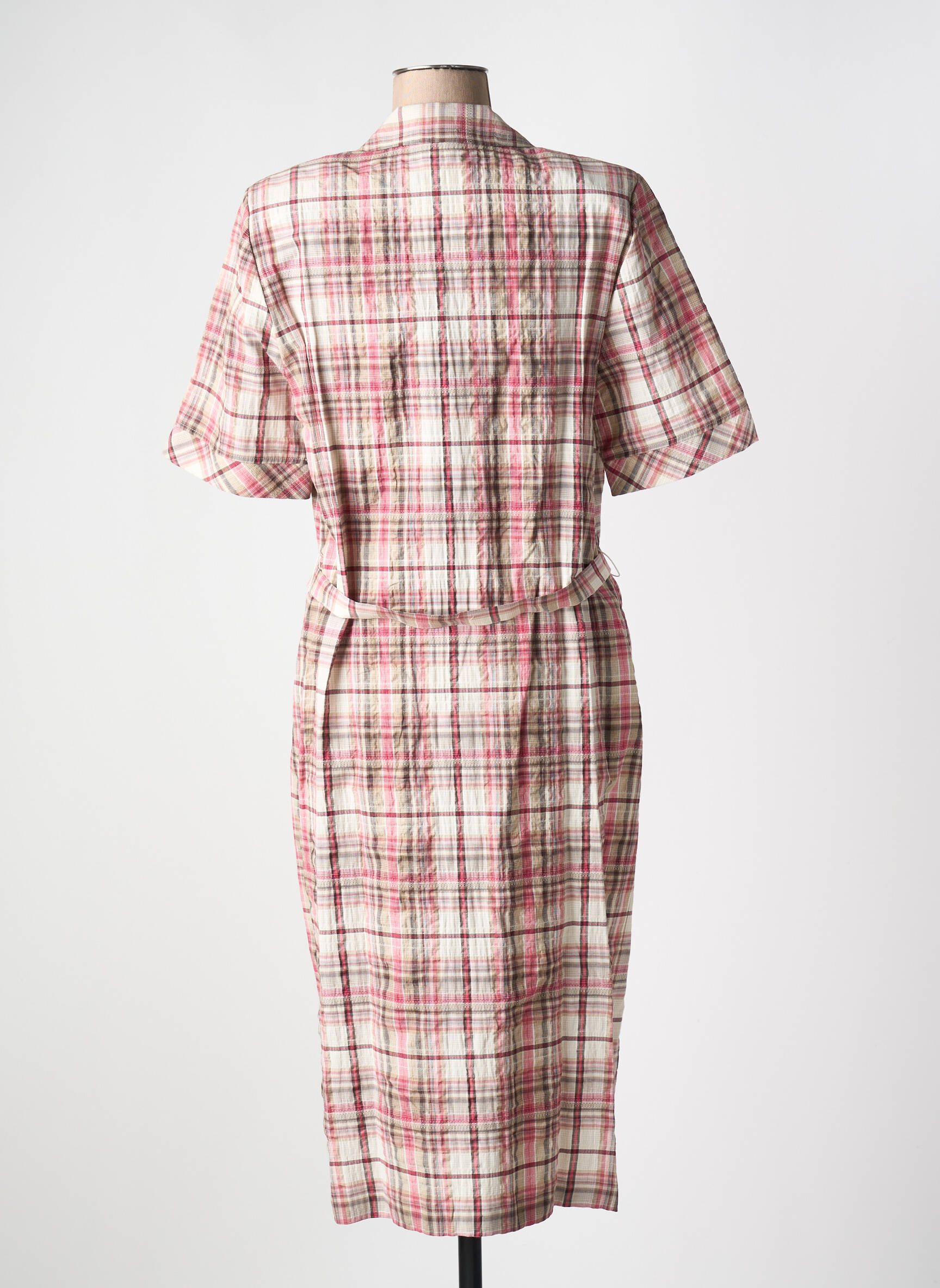 Profitez d’un vrai bon plan mode avec cette robe mi-longue FRANCE RIVOIRE pour femme, proposée à prix réduit pour donner un coup de fraîcheur à votre garde-robe sans vous ruiner. Son motif à carreaux rose et beige lui confère une allure authentique et vintage, tandis que sa coupe chemise avec ceinture à la taille met en valeur la silhouette. Dotée de manches courtes et de poches poitrine à rabat, elle assure une touche casual-chic idéale pour toutes les occasions du quotidien. Cette pièce est parfaite pour celles qui recherchent un style tendance à petit prix, sans compromis sur l’élégance.