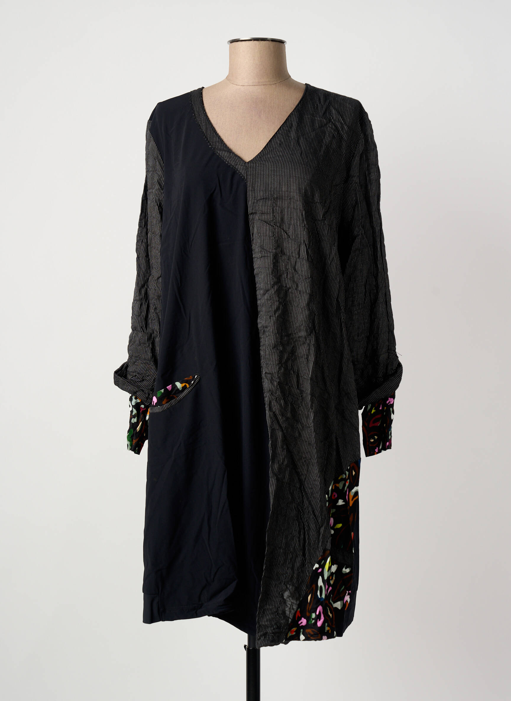 Profitez d’une occasion à ne pas manquer avec cette robe mi-longue signée FRANCK ANNA, une pièce originale au style décontracté qui sublime votre silhouette tout en vous offrant un vrai bon plan. Son design bicolore joue sur l’association de textures et de matières, tandis que les touches colorées aux poignets et à la base ajoutent une note dynamique et moderne. Légère et facile à porter, elle assure confort et caractère unique pour un prix malin, parfait pour se démarquer sans se ruiner.