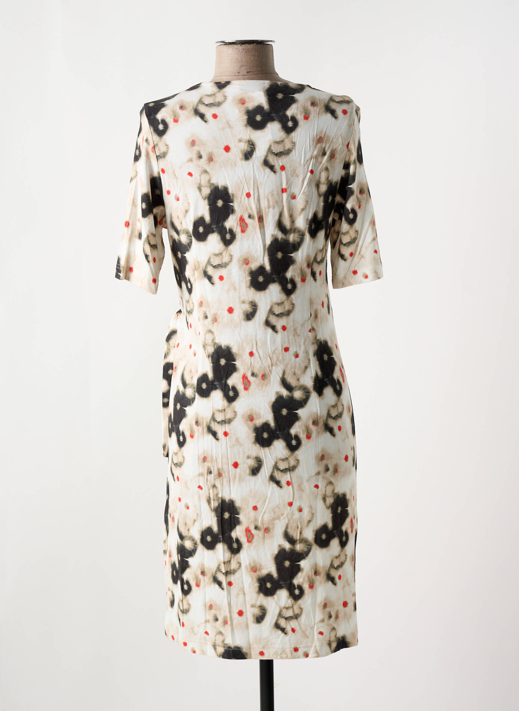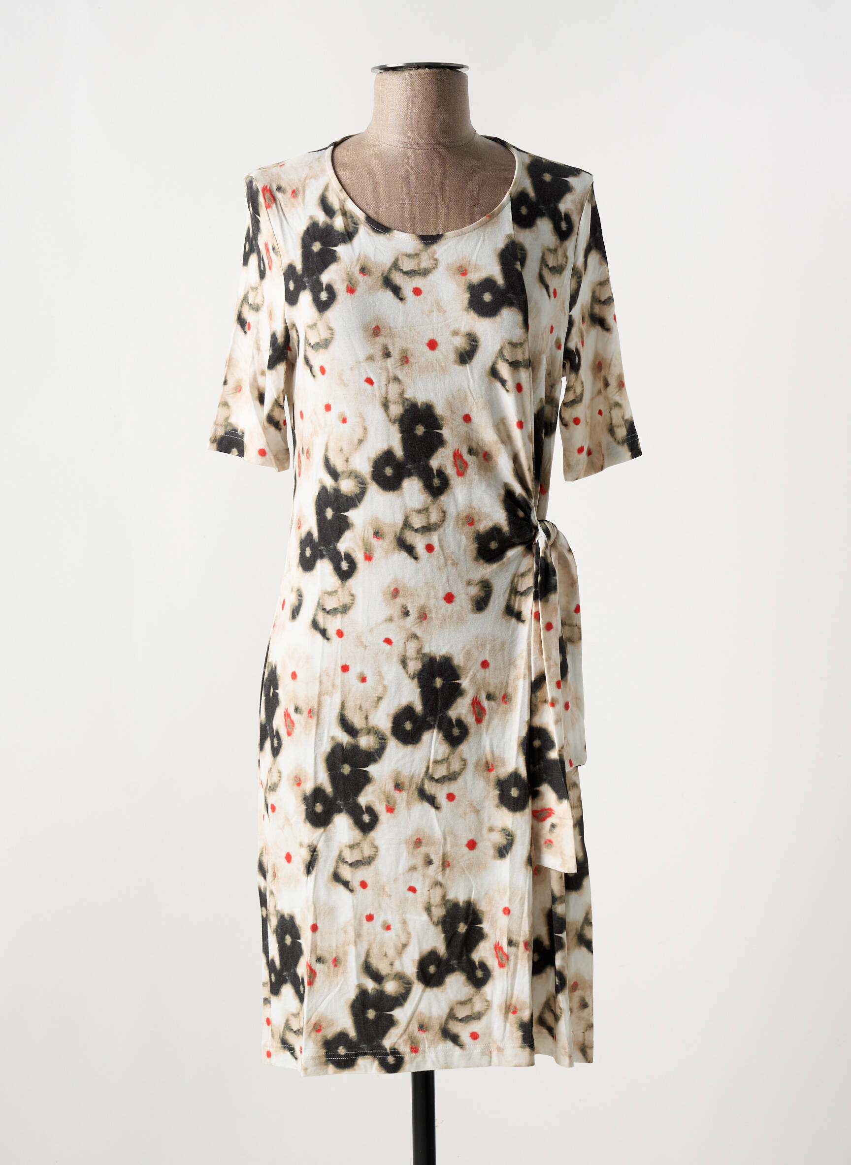 Imaginez une robe qui allie subtilement légèreté et audace pour sublimer chaque silhouette avec naturel. Cette robe mi-longue de FRANK WALDER joue sur un imprimé abstrait mêlant des touches noires et éclats rouges sur un fond clair, offrant un équilibre parfait entre discrétion et caractère. Sa coupe droite est agrémentée d'une ceinture latérale qui vient marquer la taille tout en apportant une touche féminine délicate, tandis que ses manches trois-quarts ajoutent une élégance confortable idéale pour toutes les saisons.