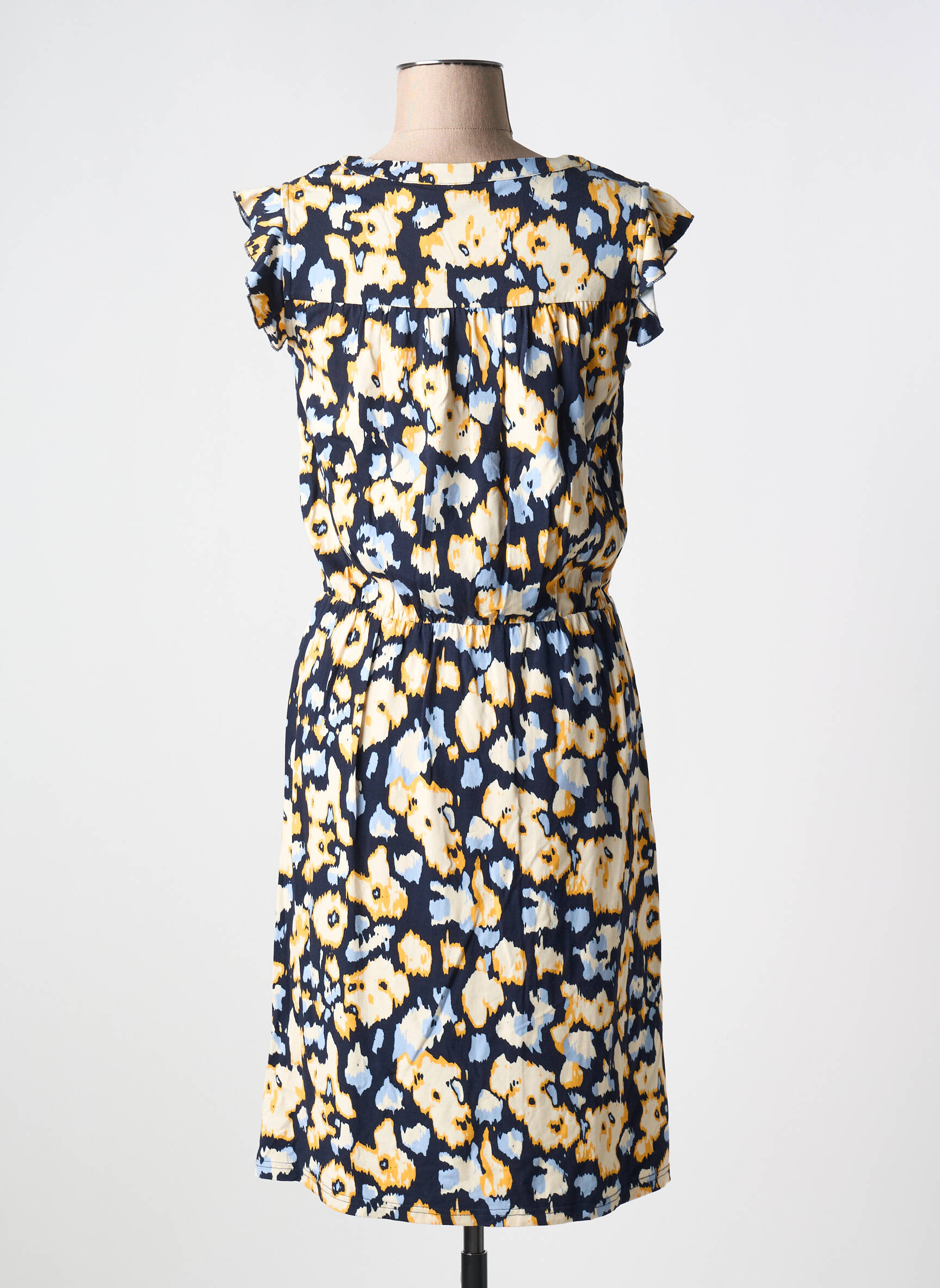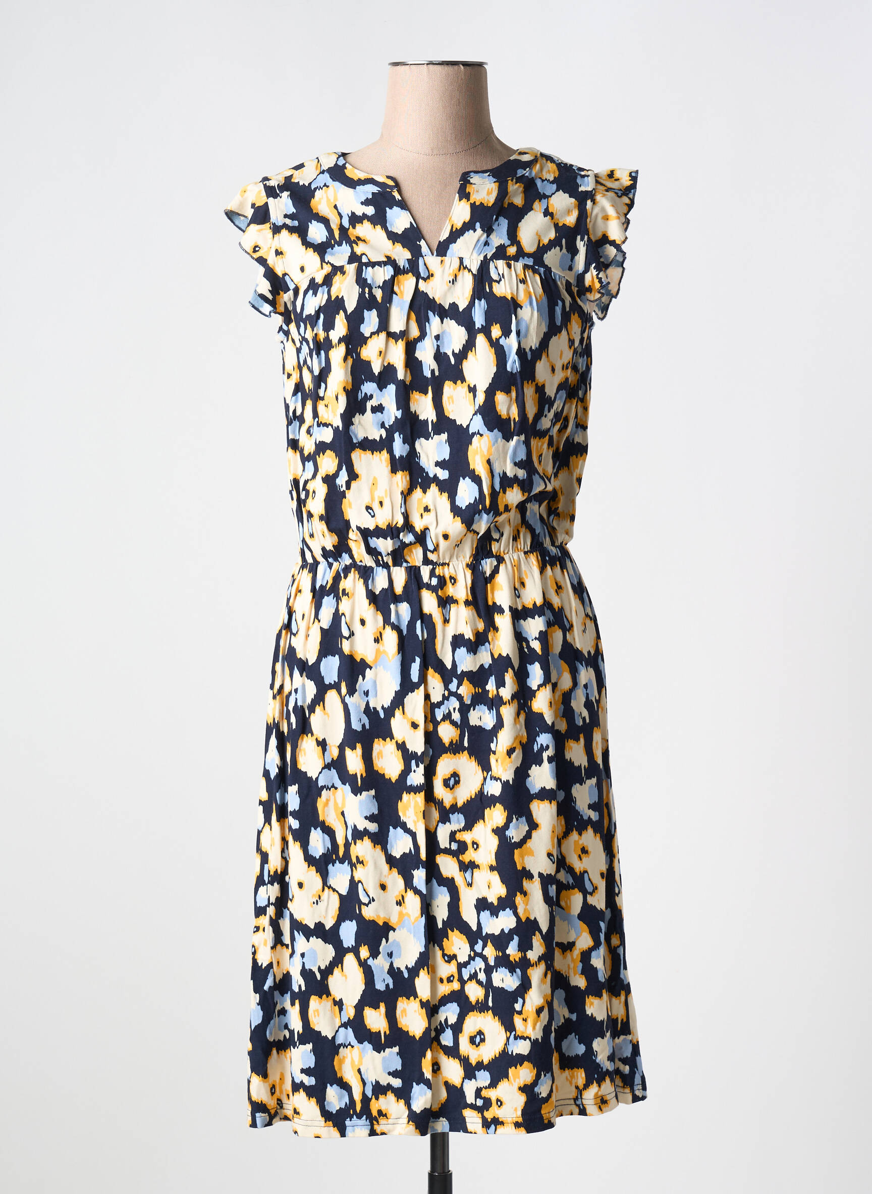 Craquez pour cette robe mi-longue de la marque FRANSA, une pièce idéale pour donner du pep's à votre garde-robe sans vous ruiner. Son imprimé fleuri dans des tons jaune, blanc et bleu apporte une touche fraîche et moderne, tandis que sa coupe fluide et féminine mettra en valeur votre silhouette en toute simplicité. Les petits volants délicats sur les épaules ajoutent une note de charme, parfaite pour allier confort et style à prix mini. Profitez d'un bon plan mode avec ce modèle tendance, accessible à toutes celles qui aiment se faire plaisir à petit prix.