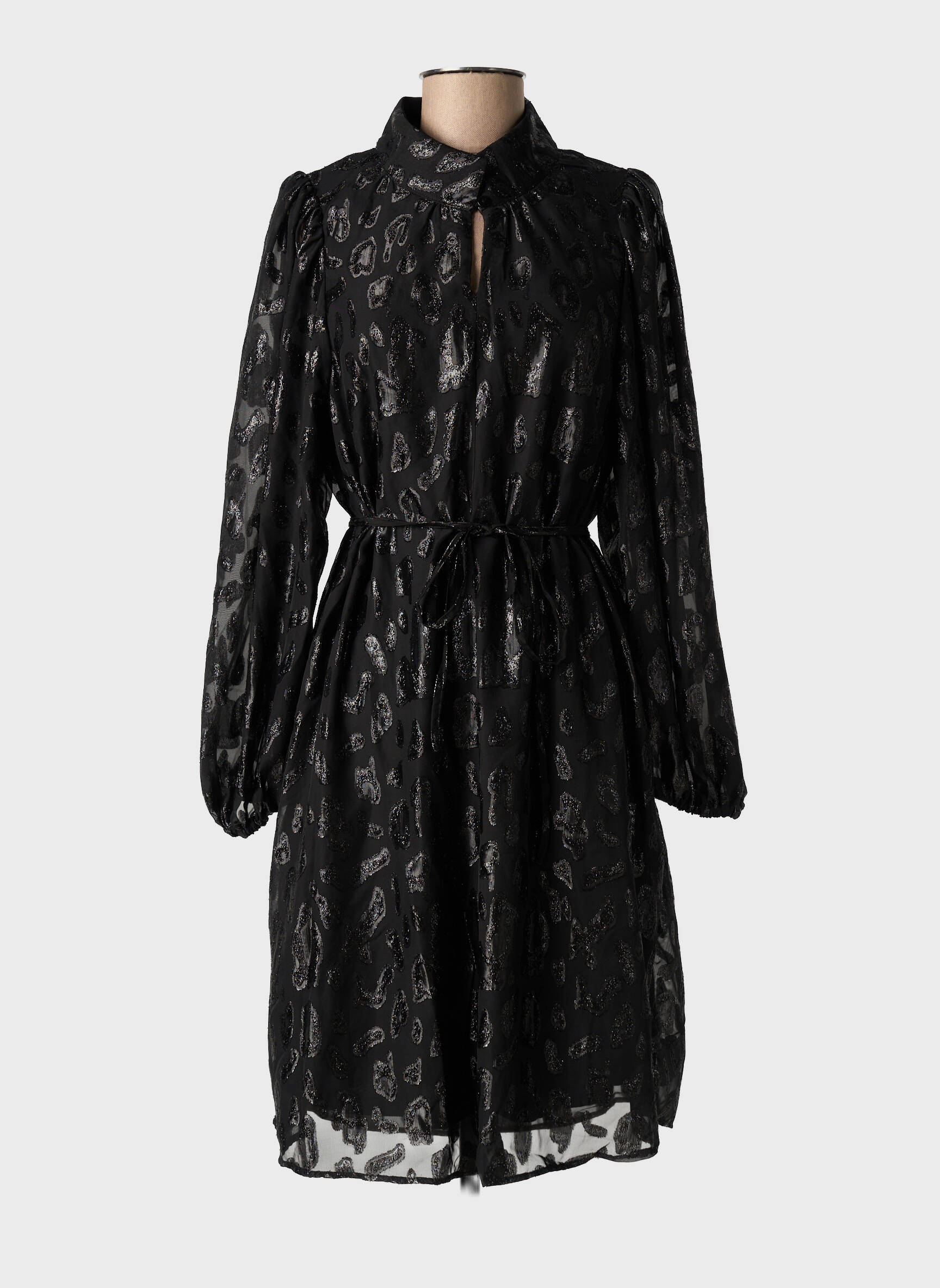 Craquez pour cette robe mi-longue signée FRANSA à prix irrésistible, idéale pour apporter une touche chic à votre garde-robe tout en réalisant de belles économies. Sa coupe élégante, légèrement cintrée par une ceinture à nouer, met en valeur la silhouette tandis que son tissu noir orné de motifs argentés subtils lui confère une allure sophistiquée. Les manches longues bouffantes, le col chemise et le petit détail goutte d'eau à l'encolure ajoutent une note raffinée parfaite pour toutes les occasions, du quotidien à la soirée. Saisissez ce bon plan mode avant qu’il ne soit trop tard !
