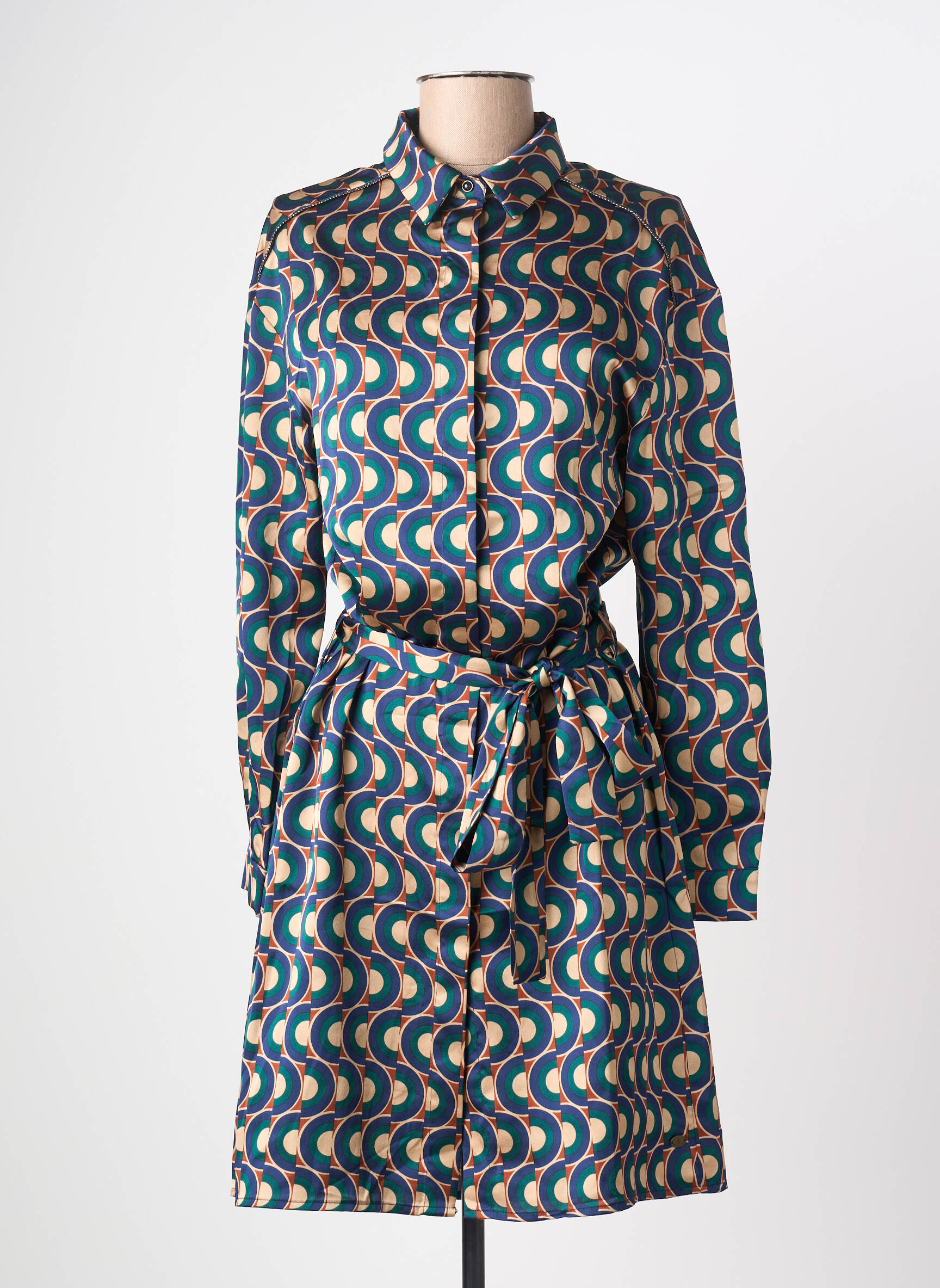 Craquez pour cette robe mi-longue FREEMAN T.PORTER à prix mini, un véritable bon plan pour dynamiser votre garde-robe avec une touche graphique audacieuse. Son motif rétro coloré, son col chemise chic et sa ceinture assortie mettent en valeur la silhouette tout en affirmant une allure moderne, parfaite pour conjuguer style et économies.
