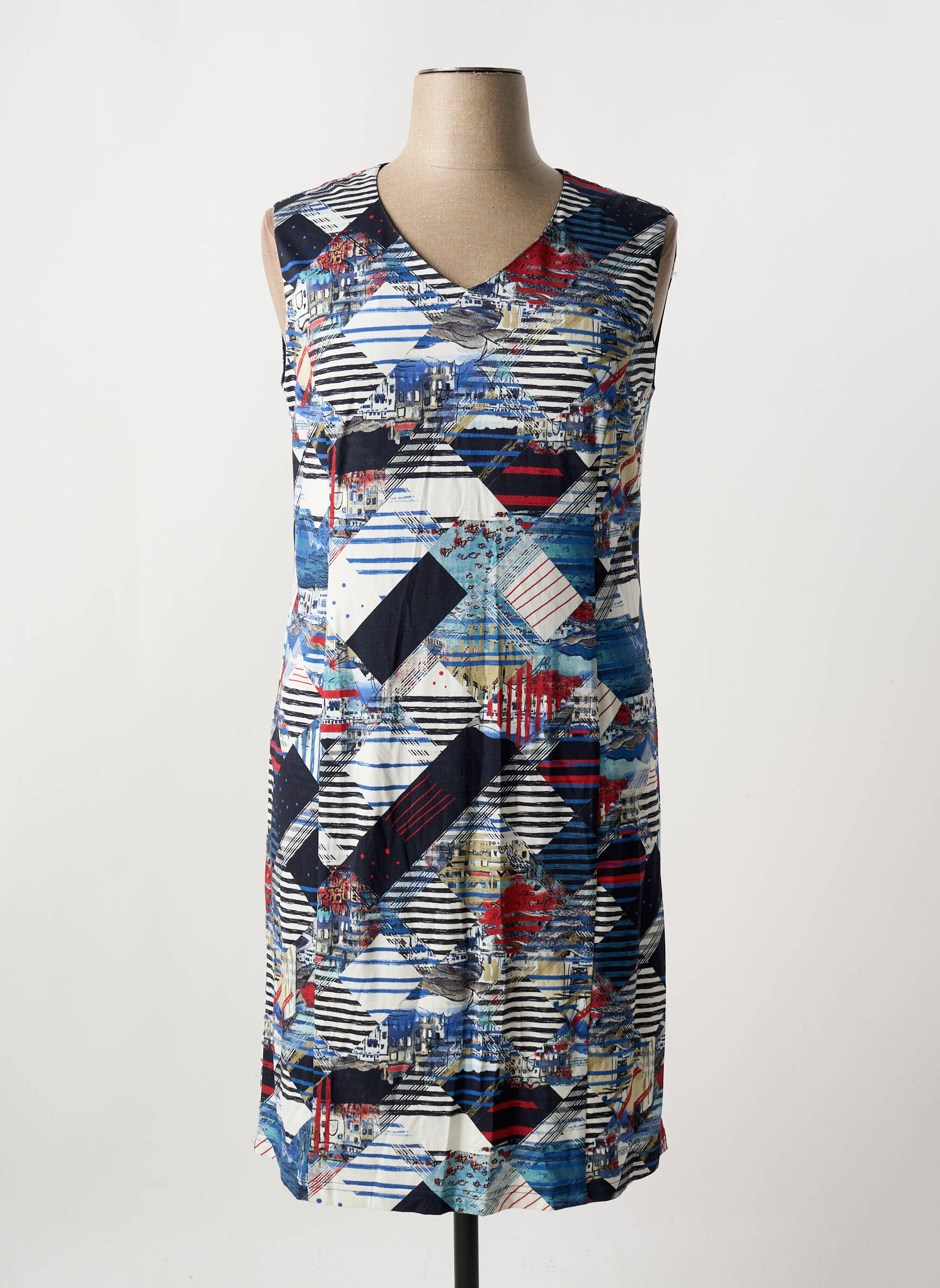 Profitez d’un vrai bon plan avec cette robe mi-longue de la marque GEVANA, idéale pour celles qui recherchent la tendance à prix mini grâce à son imprimé graphique moderne et ses couleurs vibrantes qui apportent une touche originale à votre garde-robe tout en restant accessibles. Ce modèle sans manches au col en V et à la coupe fluide offre un style frais et facile à porter en toutes circonstances, parfait pour allier confort et économies sans compromis sur l’élégance.