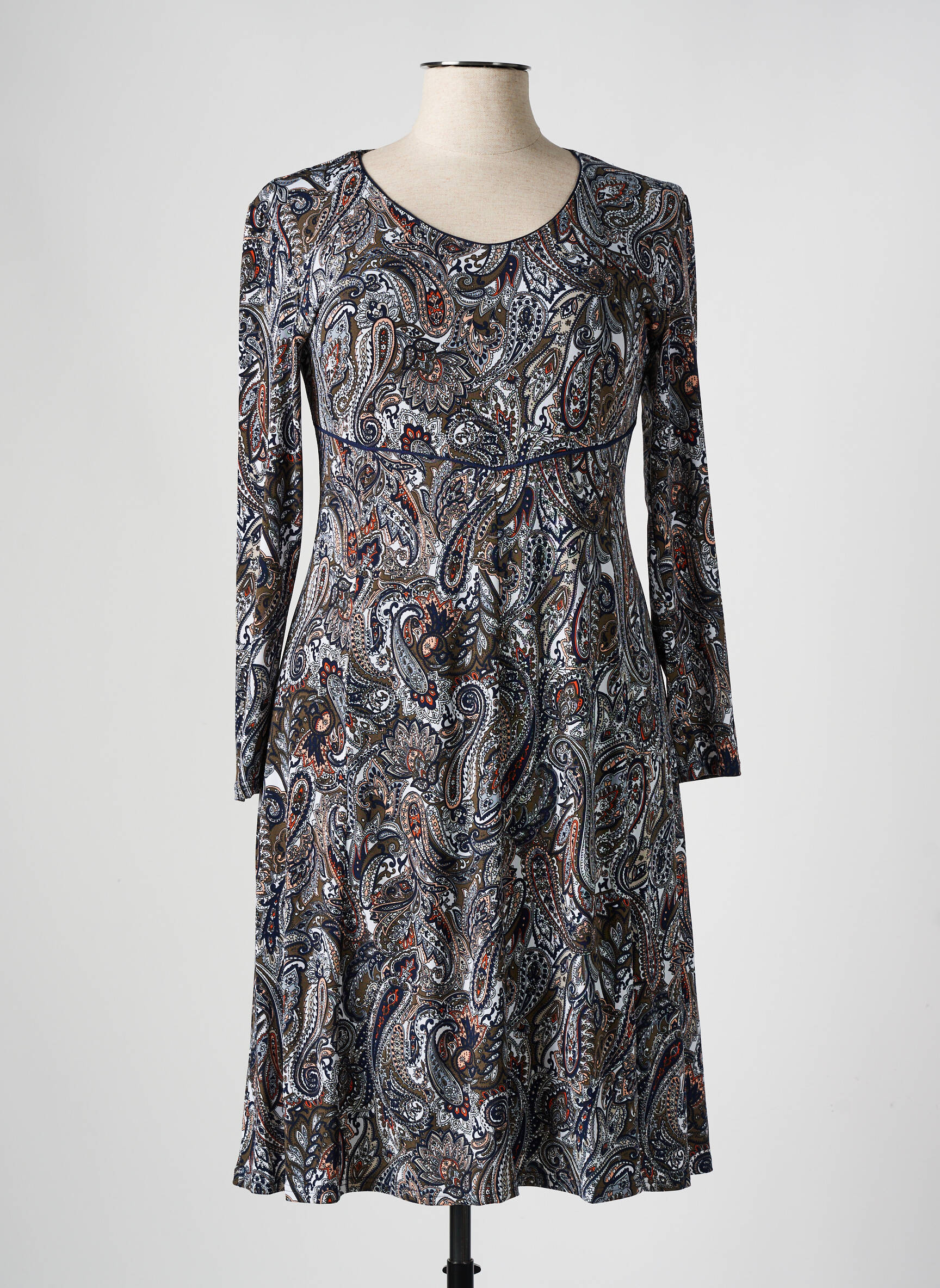 Craquez pour cette robe mi-longue de la marque GEVANA, une vraie bonne affaire pour renouveler votre dressing sans vous ruiner. Son imprimé paisley aux nuances délicates apporte une touche d'élégance originale, tandis que sa coupe ajustée au niveau de la taille souligne subtilement la silhouette. Les manches longues offrent un confort parfait en toute saison, faisant de cette robe un choix idéal au quotidien comme en soirée. Profitez de la qualité GEVANA à prix mini et faites-vous plaisir sans compromis !