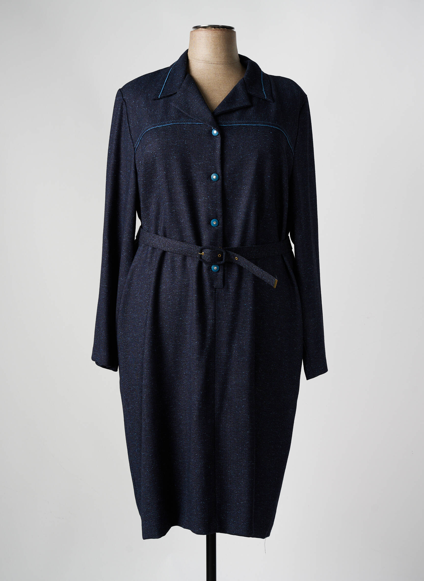 Profitez d’un vrai bon plan avec cette robe mi-longue signée GEVANA, idéale pour allier élégance et petits prix. Son tissu bleu foncé légèrement chiné met en valeur la silhouette, tandis que sa coupe féminine à manches longues, rehaussée d’un col chemise et de jolis boutons contrastés, apporte une dégaine à la fois chic et décontractée. La ceinture ton sur ton souligne la taille et offre un ajustement personnalisé pour un look soigné en toute simplicité. C’est la pièce parfaite pour faire des économies tout en renouvelant votre garde-robe avec style.