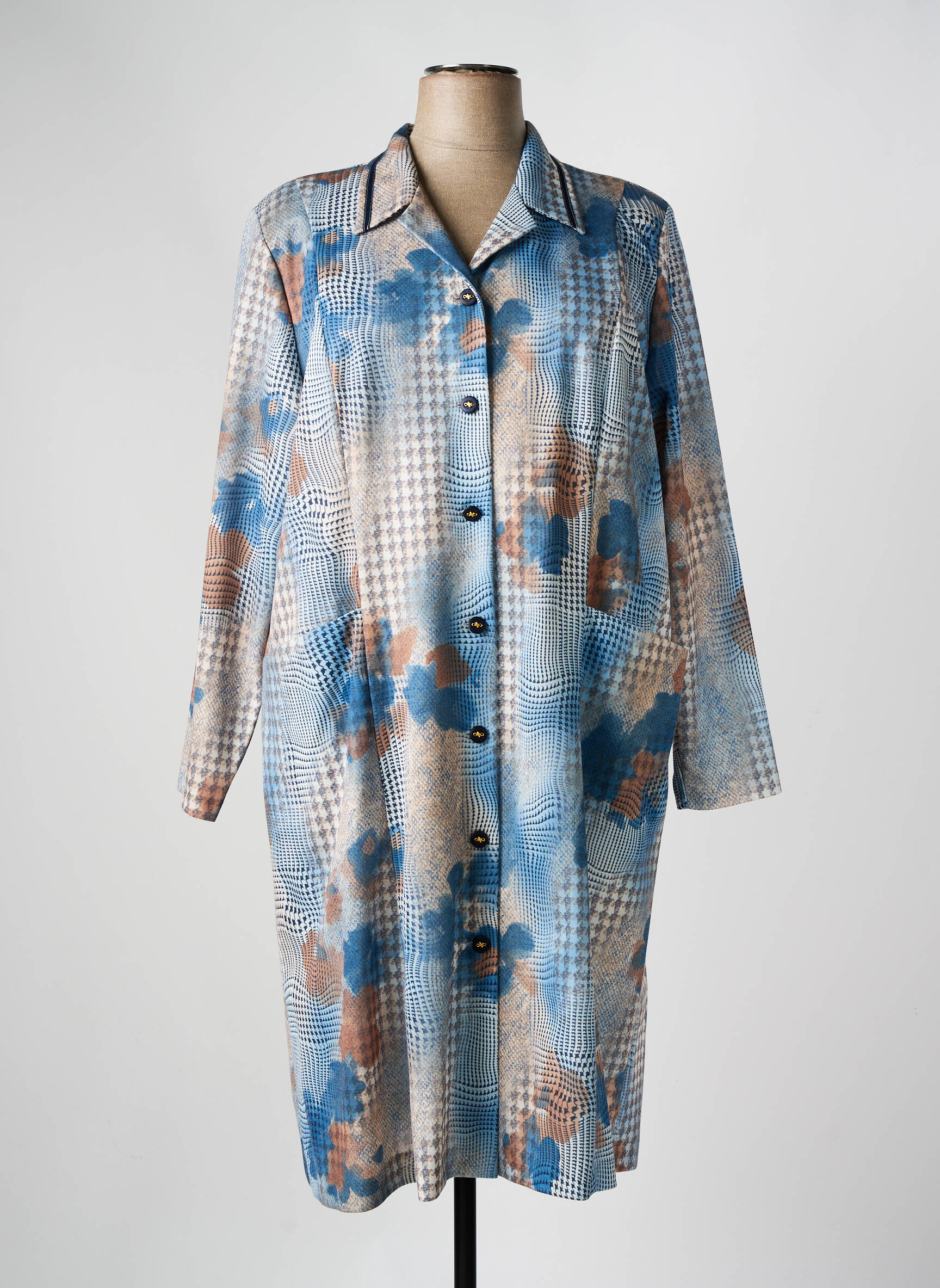 Profitez d’une véritable affaire avec cette robe mi-longue de la marque GEVANA, idéale pour celles qui veulent renouveler leur garde-robe sans se ruiner. Son imprimé graphique mêle élégamment des touches de bleu et de marron sur un fond texturé, pour une allure originale et moderne. Sa coupe droite et son boutonnage sur toute la longueur offrent confort et praticité au quotidien tandis que le col classique apporte une note sophistiquée, parfait pour toutes vos occasions. C’est le choix malin pour un style tendance à petit prix.