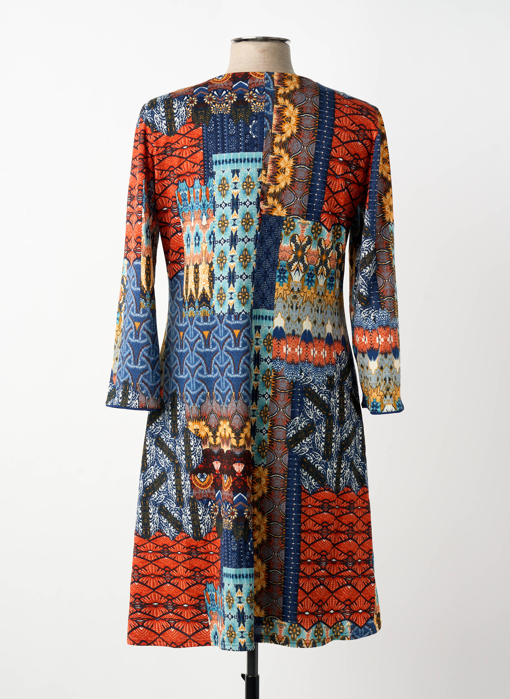 Craquez pour cette robe mi-longue GEVANA pour femme, une vraie pépite à prix mini qui allie originalité et confort avec son superbe imprimé patchwork mêlant des touches de bleu, d’orange et de jaune. Sa coupe légèrement évasée et ses manches longues mettent en valeur la silhouette tout en restant agréable à porter au quotidien, parfaite pour apporter une note chaleureuse à votre dressing sans vous ruiner.