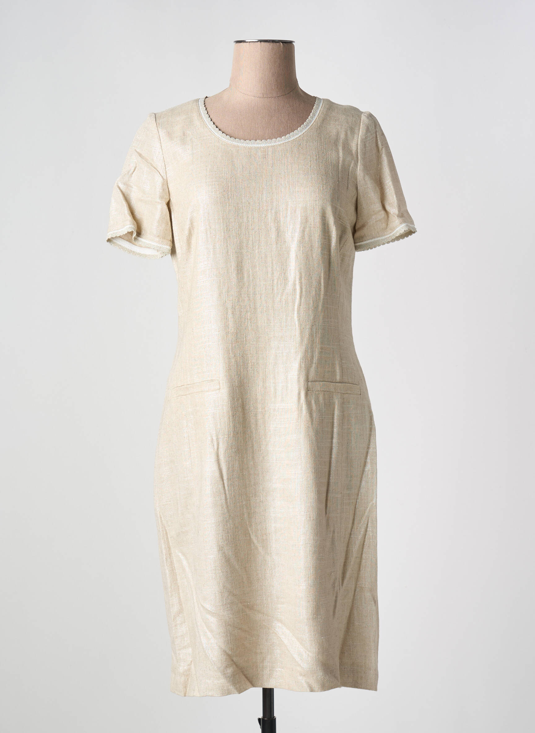 Profitez d’un véritable bon plan avec cette robe mi-longue signée Gregory Pat, idéale pour adopter un style chic à petit prix. Son élégance discrète se retrouve dans sa coupe sobre et féminine, sublimée par de courts manches et un col rond délicatement souligné d’un liseré contrastant. Son tissu à l’aspect légèrement texturé apporte une touche raffinée et actuelle, parfaite pour toutes les occasions du quotidien ou pour accessoiriser lors d'événements. Cette robe polyvalente vous offre l'opportunité de renouveler votre garde-robe sans vous ruiner.