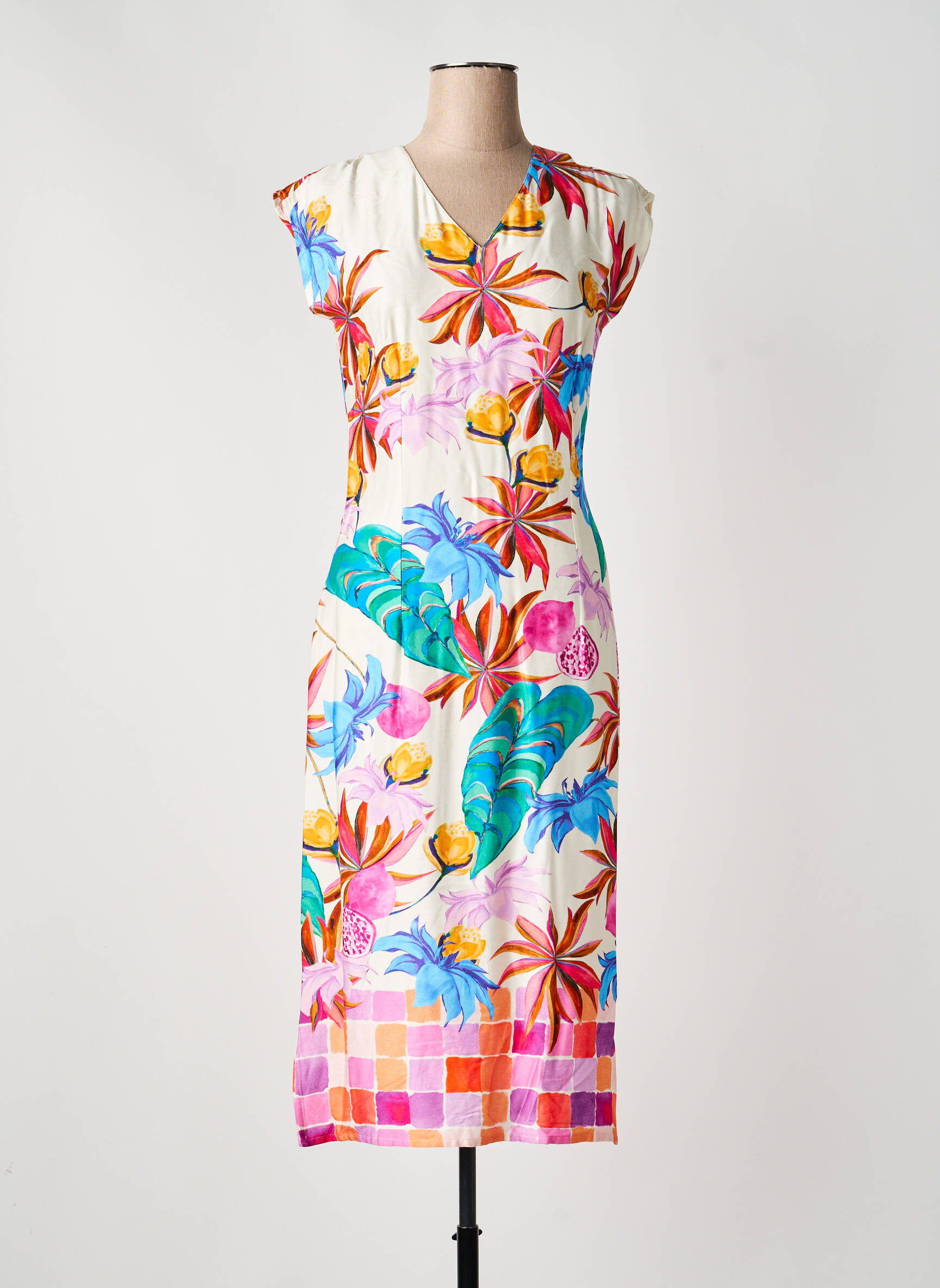 Profitez d’une vraie affaire avec cette robe mi-longue signée GREGORY PAT, idéale pour apporter une touche de fraîcheur et de pep’s à votre garde-robe sans vous ruiner. Avec son imprimé tropical éclatant mêlant motifs floraux et feuillage coloré, elle transforme le quotidien en une véritable invitation au voyage et se prête aussi bien à une sortie citadine qu’à une escapade estivale. Sa coupe fluide et féminine assure un confort absolu tout au long de la journée, pour une allure stylée à prix mini.