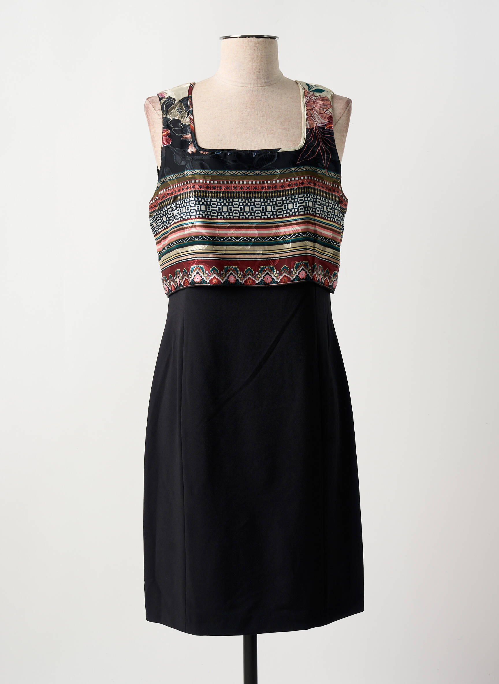 Craquez pour cette robe mi-longue de la marque Gregory Pat, un vrai bon plan mode à petit prix ! Son buste aux motifs colorés et géométriques apporte une touche moderne et originale, tandis que sa jupe noire simple et élégante affine la silhouette pour un look chic et facile à porter en toute occasion sans se ruiner.