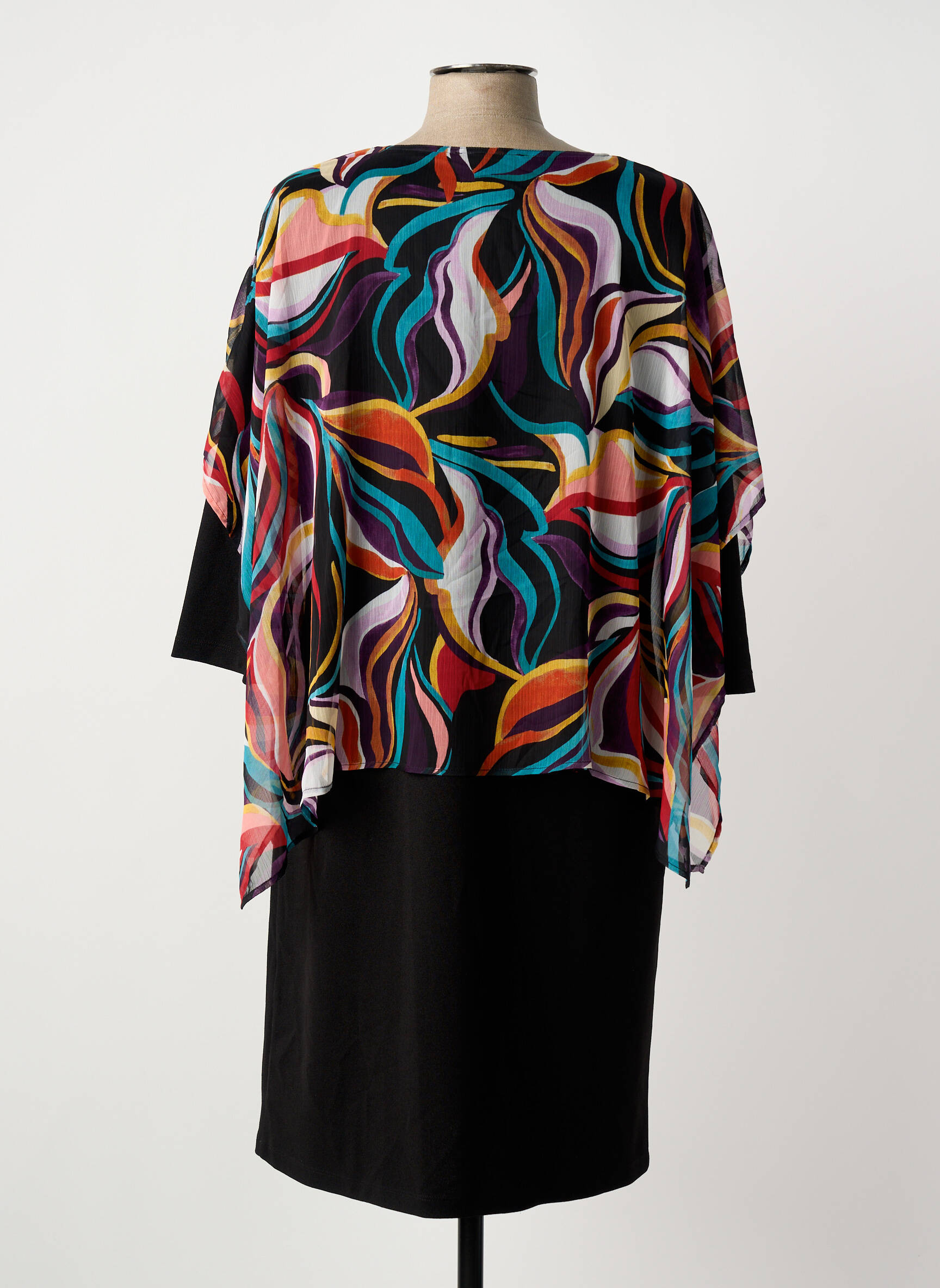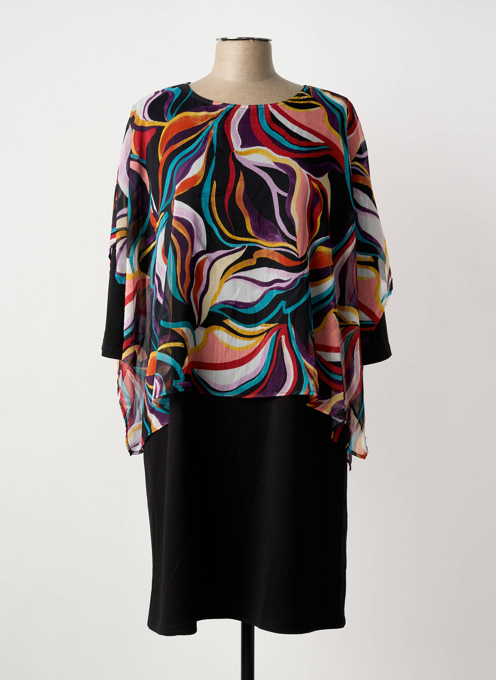 Craquez pour cette robe mi-longue de la marque Gregory Pat et faites-vous plaisir à prix malin. Son fond noir sobre est sublimé par un voile coloré aux motifs abstraits ultra-vitaminés, qui apporte une touche de fraîcheur et d'originalité à votre silhouette. Grâce à sa coupe fluide et sa superposition élégante, cette robe vous assure un look chic et moderne à petit prix, idéale pour toutes vos occasions spéciales ou pour égayer votre quotidien sans vous ruiner.